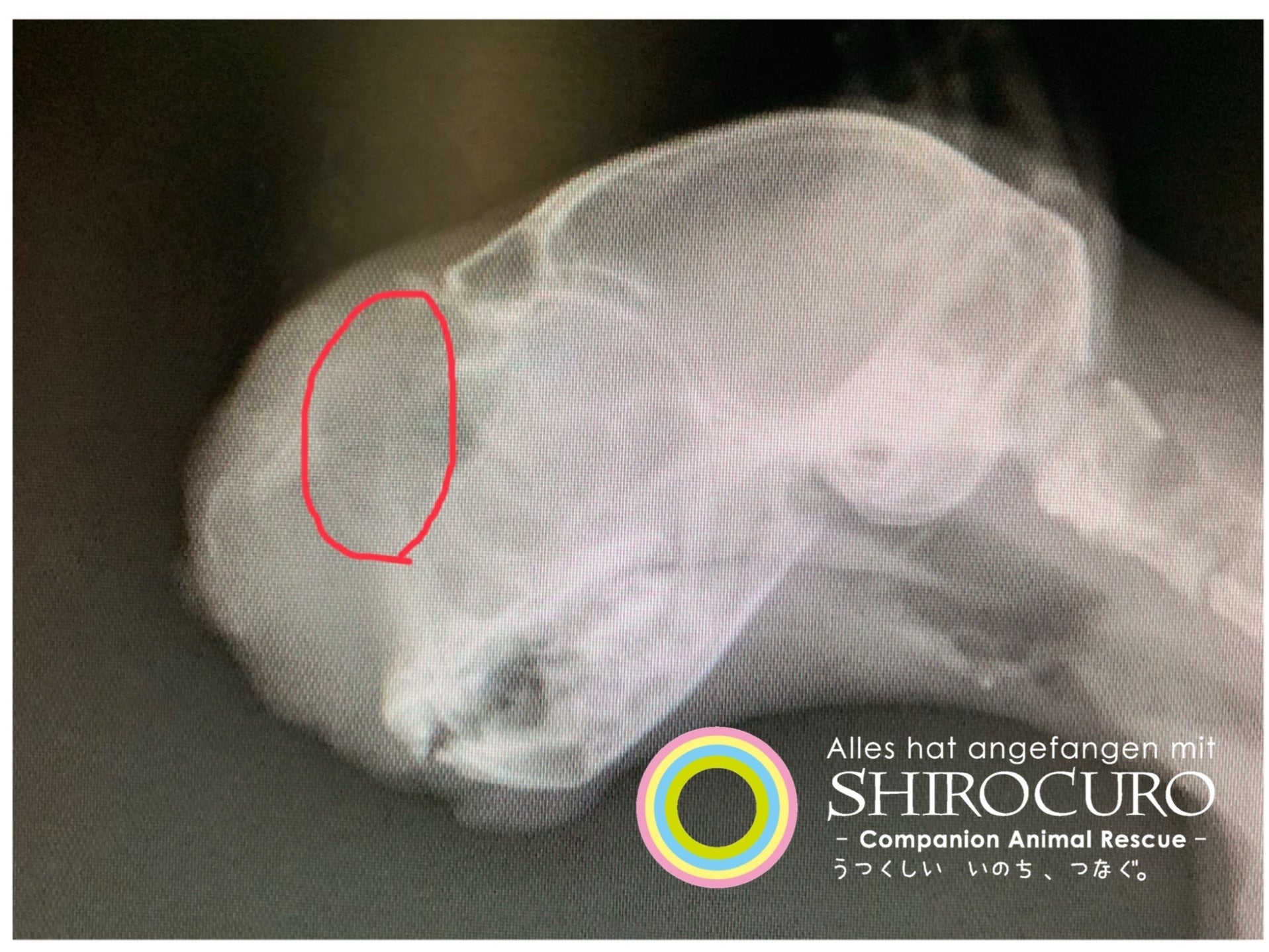 今年8/19にTwitterで原因不明の生きているのが不思議なくらい酷い状態の子猫見つけ、8/20に視察、準備を整えて8/21に保護しました。捕獲から本日までの約2ヶ月半(75日)の間に投薬、通院治療や精密検査を行った結果、アスペルギルスという真菌が鼻の骨を溶かし、外れた骨は肉芽の中に埋もれた状態。(下にレントゲン写真があります)更に数種類の細菌がおり、ダブルで鼻腔内に巣食っています。手術に耐えうる体力づくりも形になってきましたので完治に向けての最終的な治療として手術と入院治療を行います。安定した治療を継続して行う為に皆様にご支援のご協力を賜りたくプロジェクトを立ち上げました。