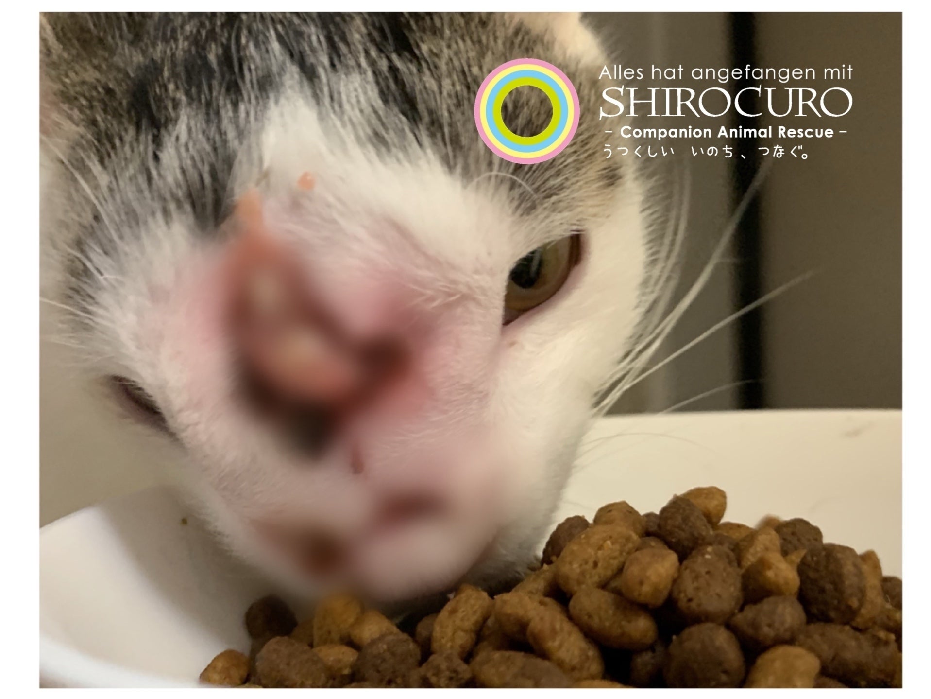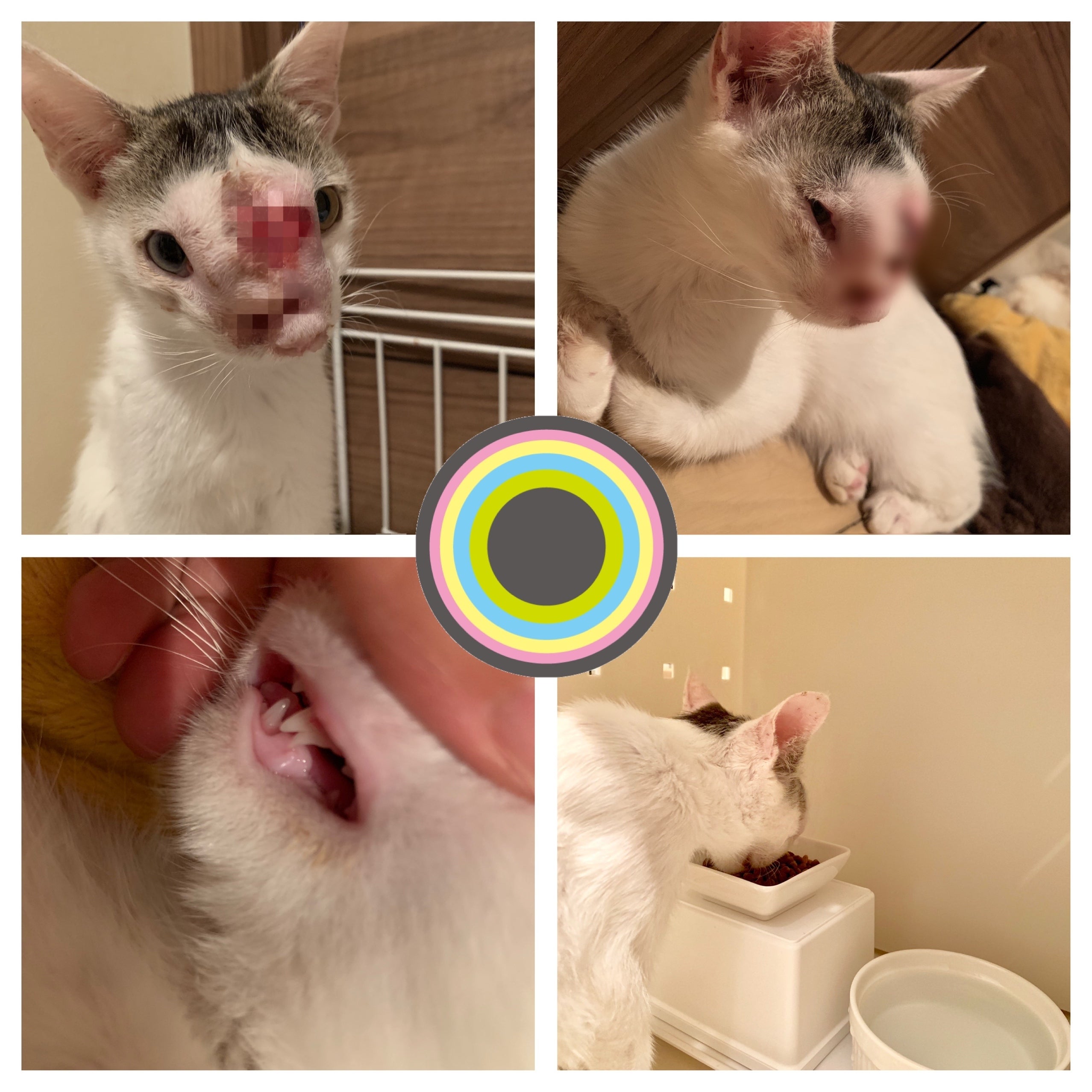 当初、右目は潰れていて、上皮の癌かもという情報がありました。結果、腫れがひどすぎて埋もれていただけで大丈夫でしたが顔がパンパンに腫れ上がり、獣医師が「しんどかったと思うよ」と。「捕まってよかった」と言っていました。