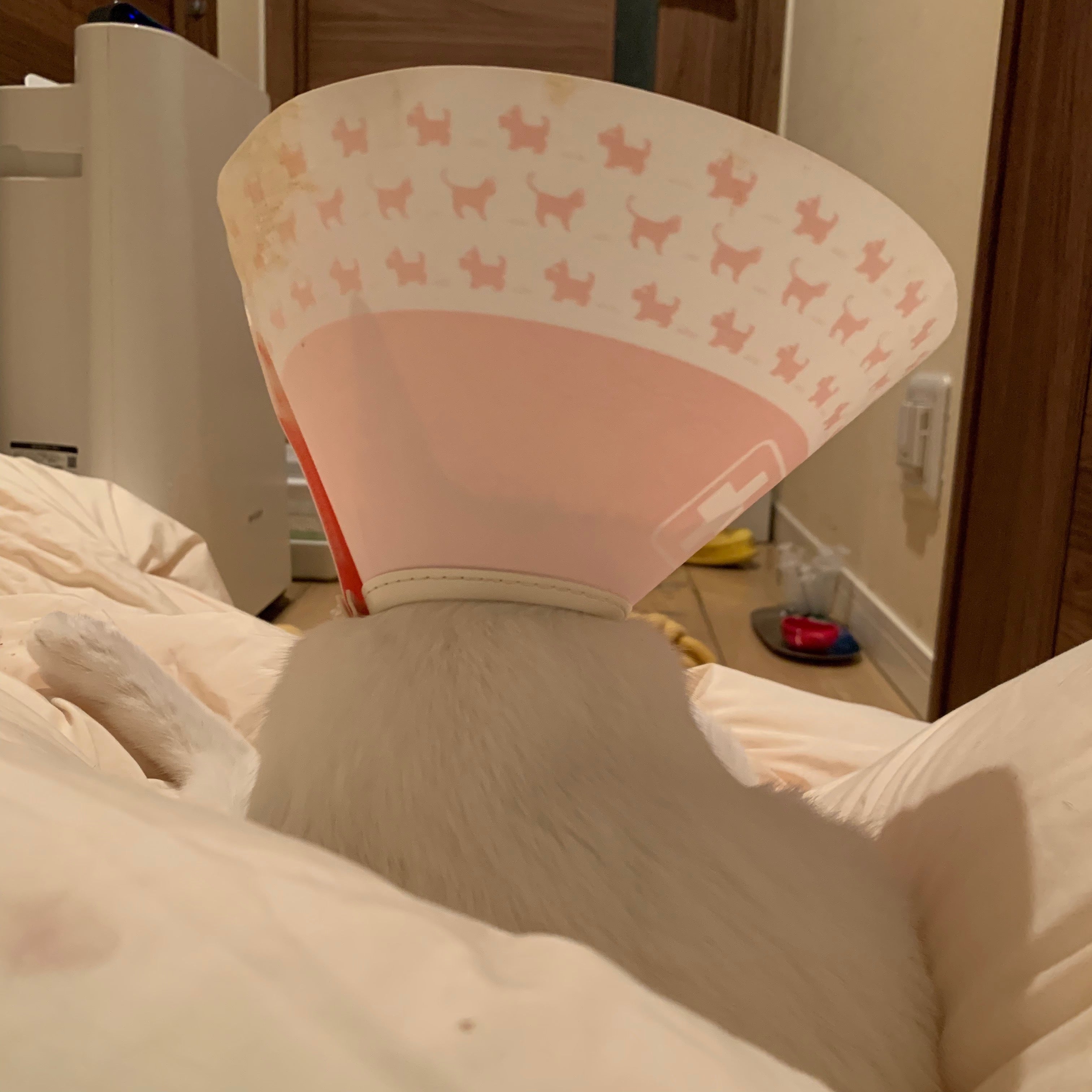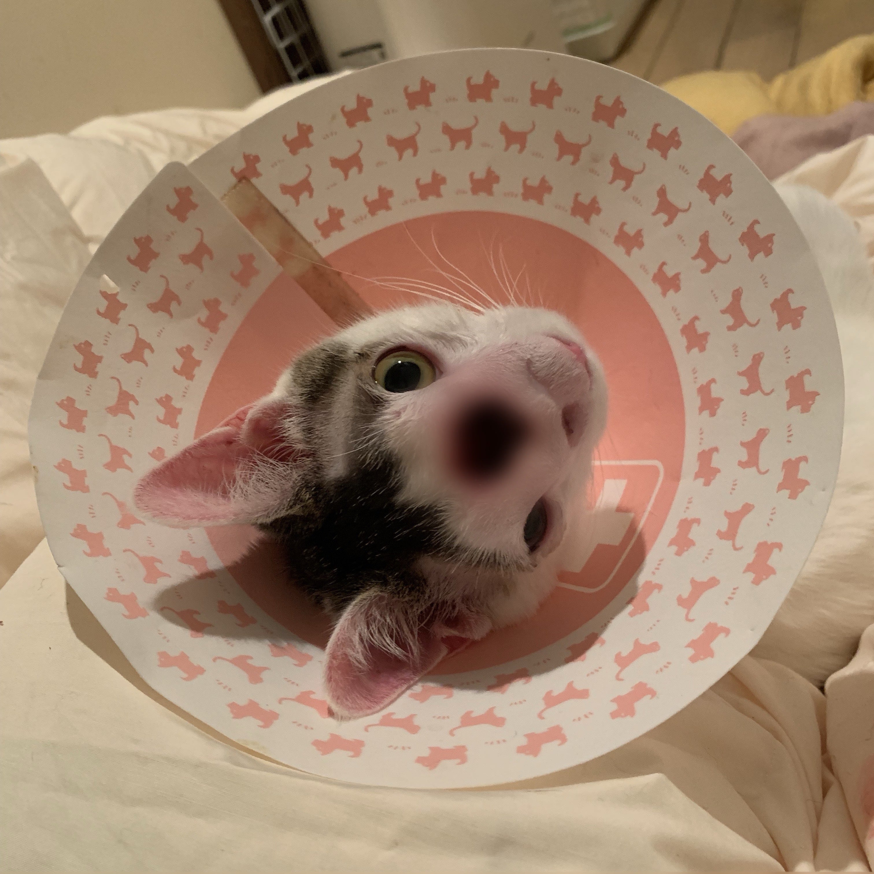 掻いて破いてはいけないのでカラーを装着。