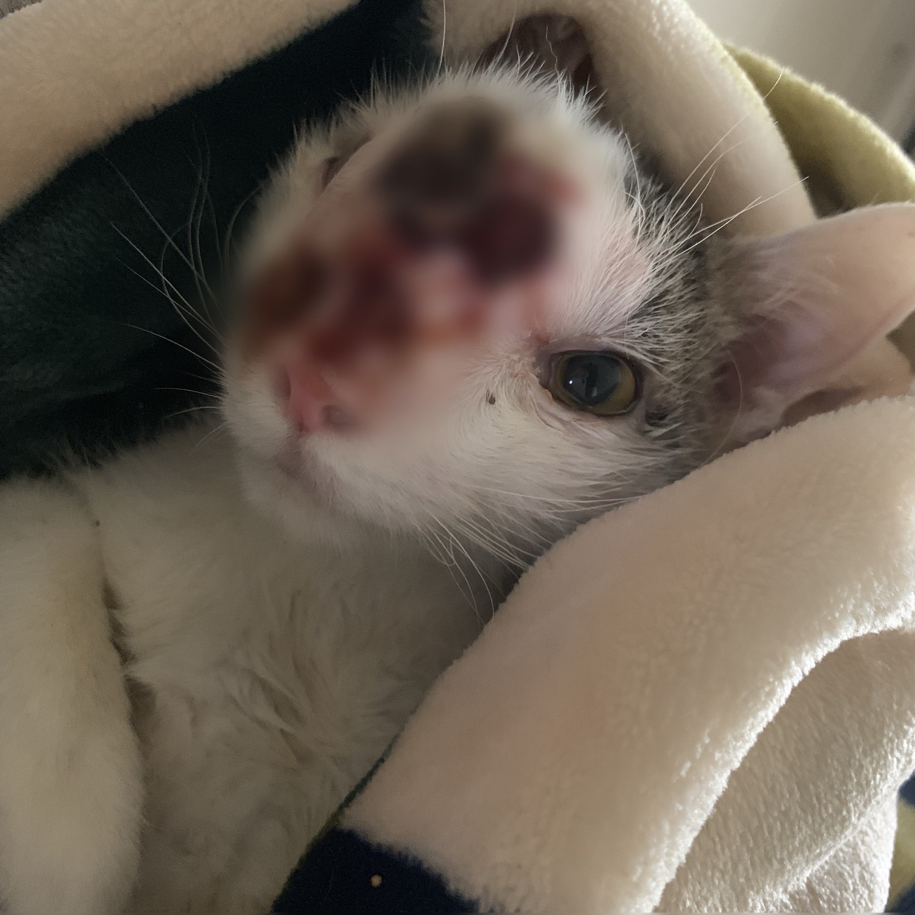 左上の黒い部分はおおきなかさぶたなんですが