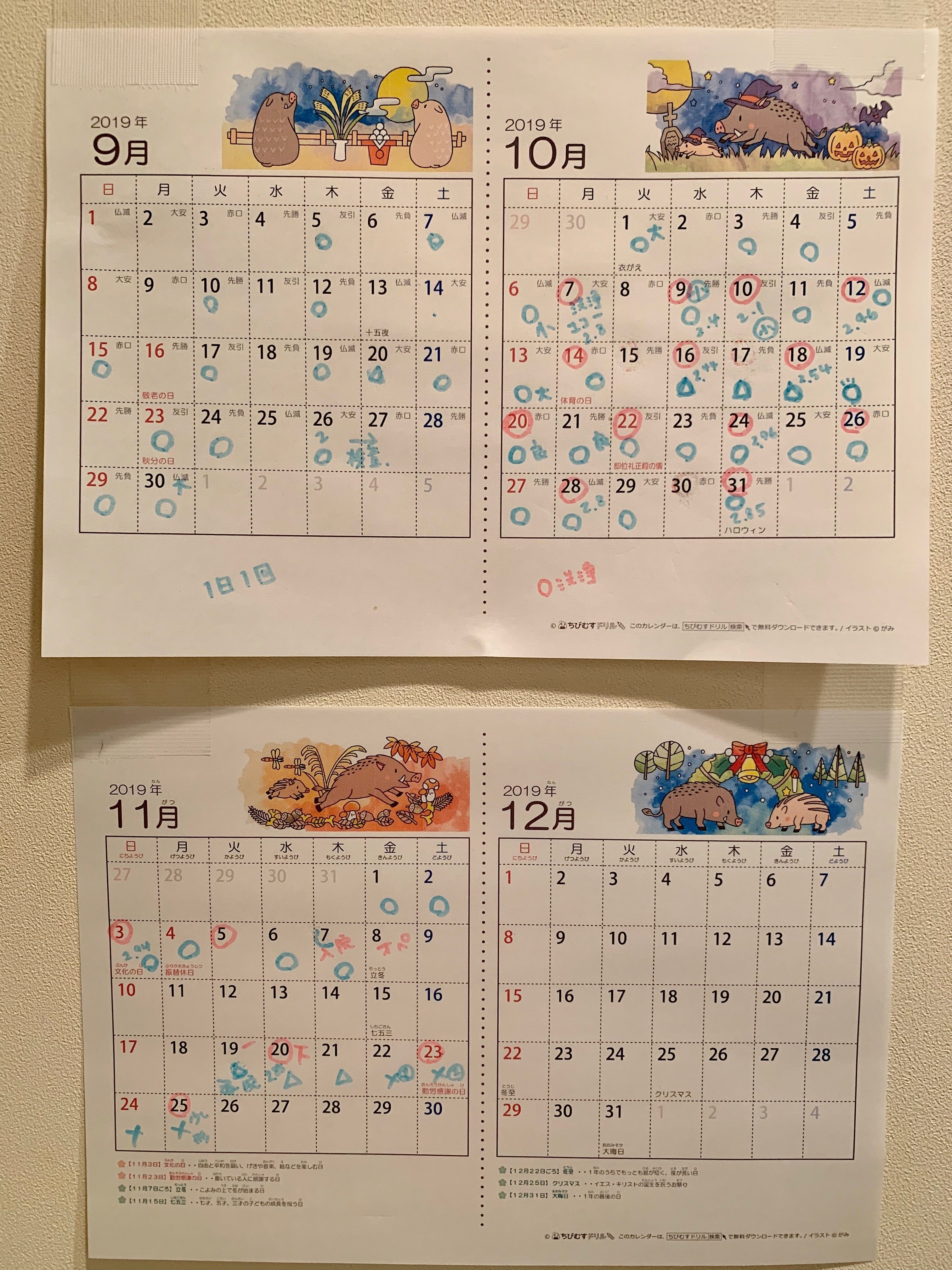 ↓9/5から始めたうんこカレンダー