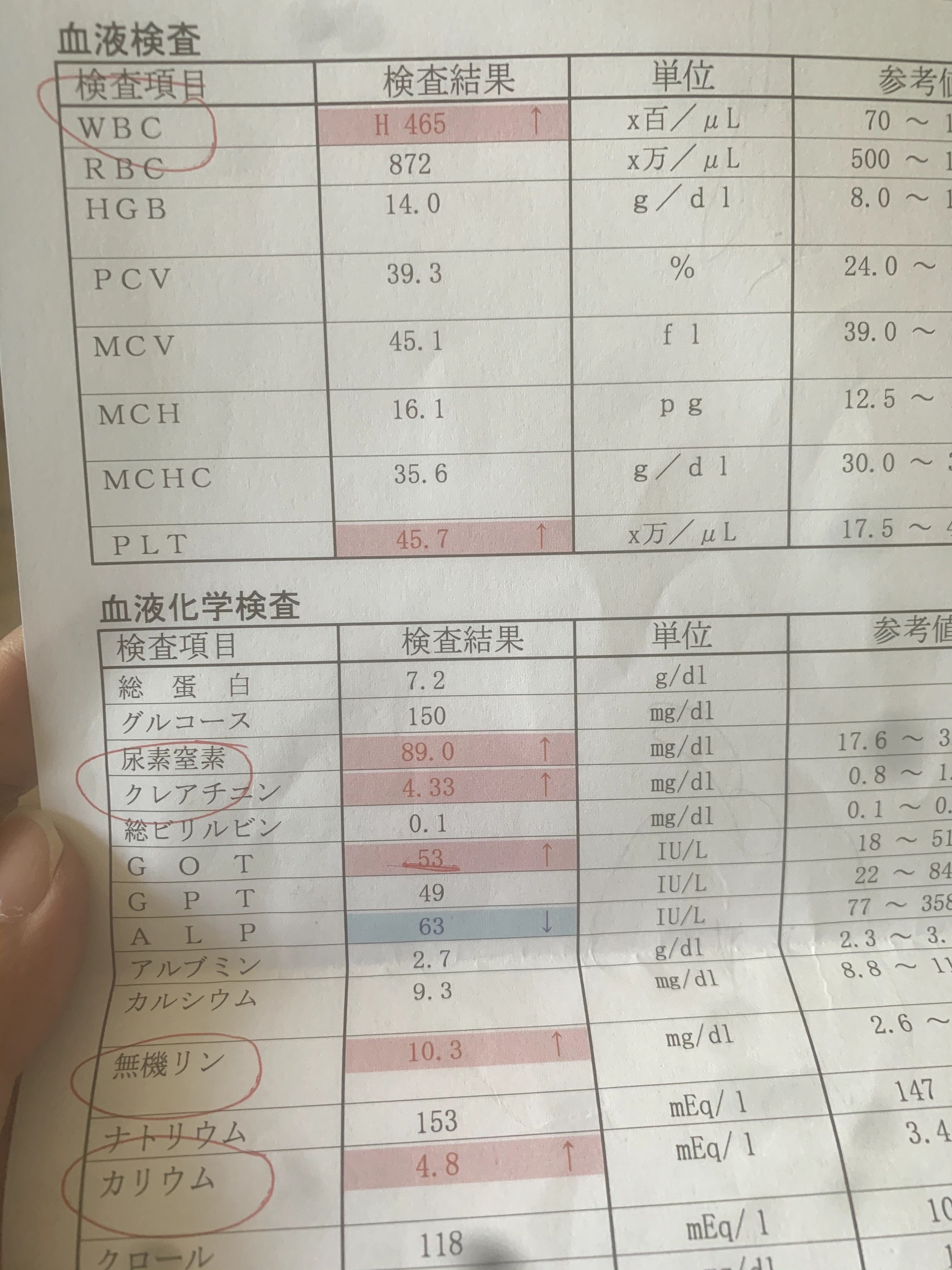 血液検査の結果、