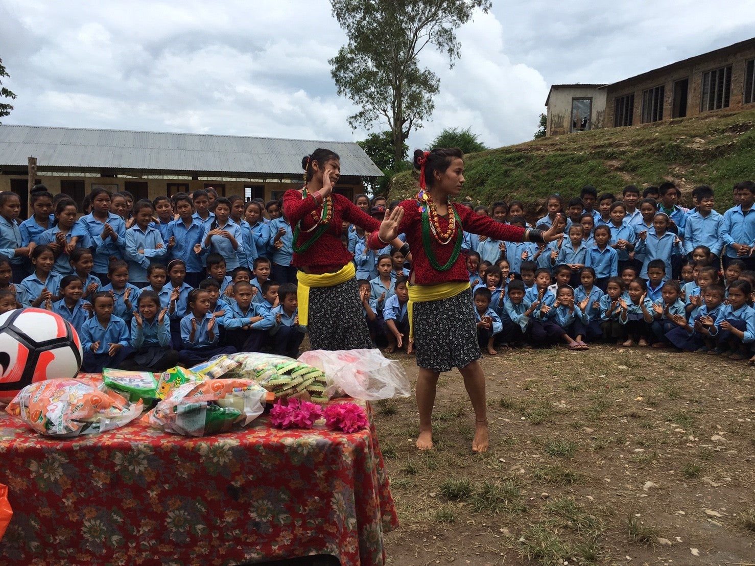 チムケソリ小学校は首都カトマンズから片道6時間ほどの場所にある山中に建つ小学校で、昨年夏に私たちが訪れた時には約200名ほどの児童が出迎えてくれました。