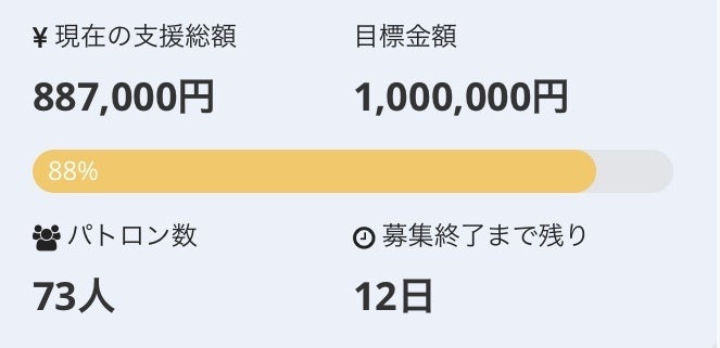 このプロジェクトも12/21締め切りで、中盤から終盤にさしかかるところになりました。現在73名様からのご支援によって達成率88%までくることができました!