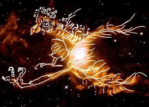 自然や見えないものに対して「祭る」、人前で儀式のように絵を生んでいきます。