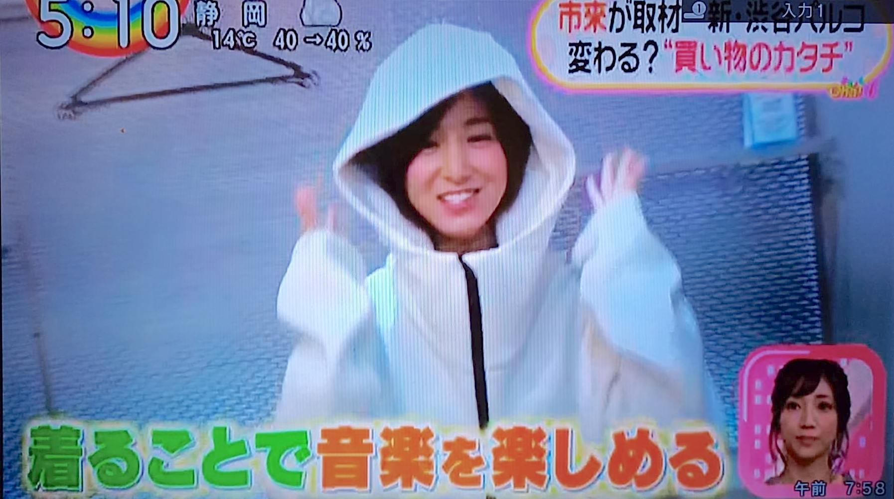 実は先日!!!日本テレビOha4!に布スピーカーを使ったパーカーが出ました!