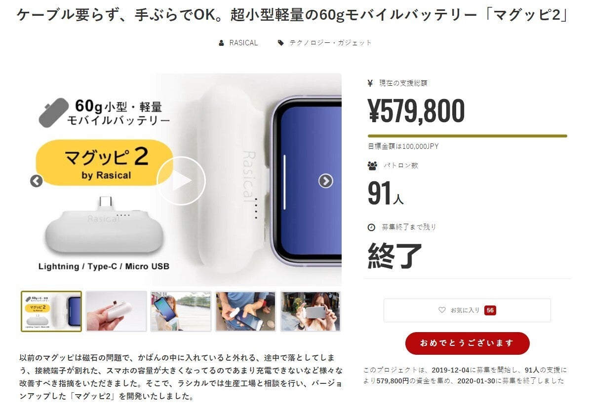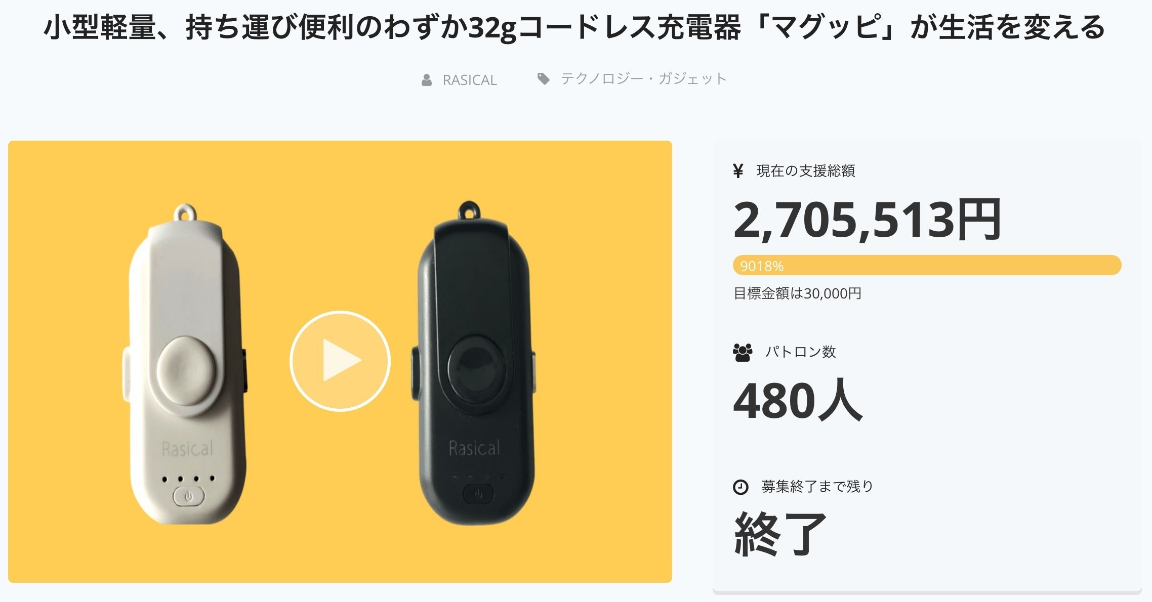 おかげさまで2018年8月に予約開始した「マグッピ」は、累計約460万円の支援金を集め、製品化することができました。