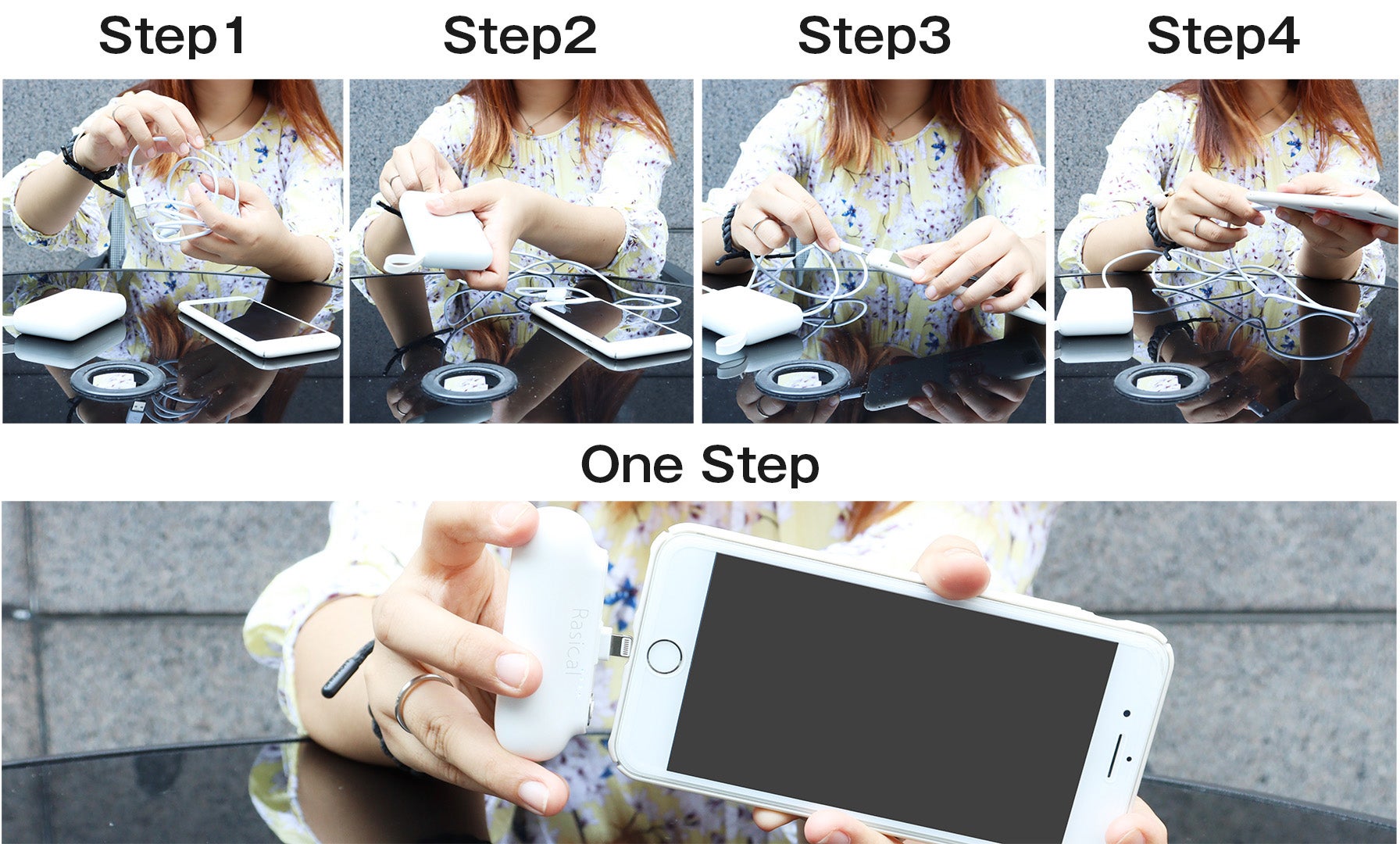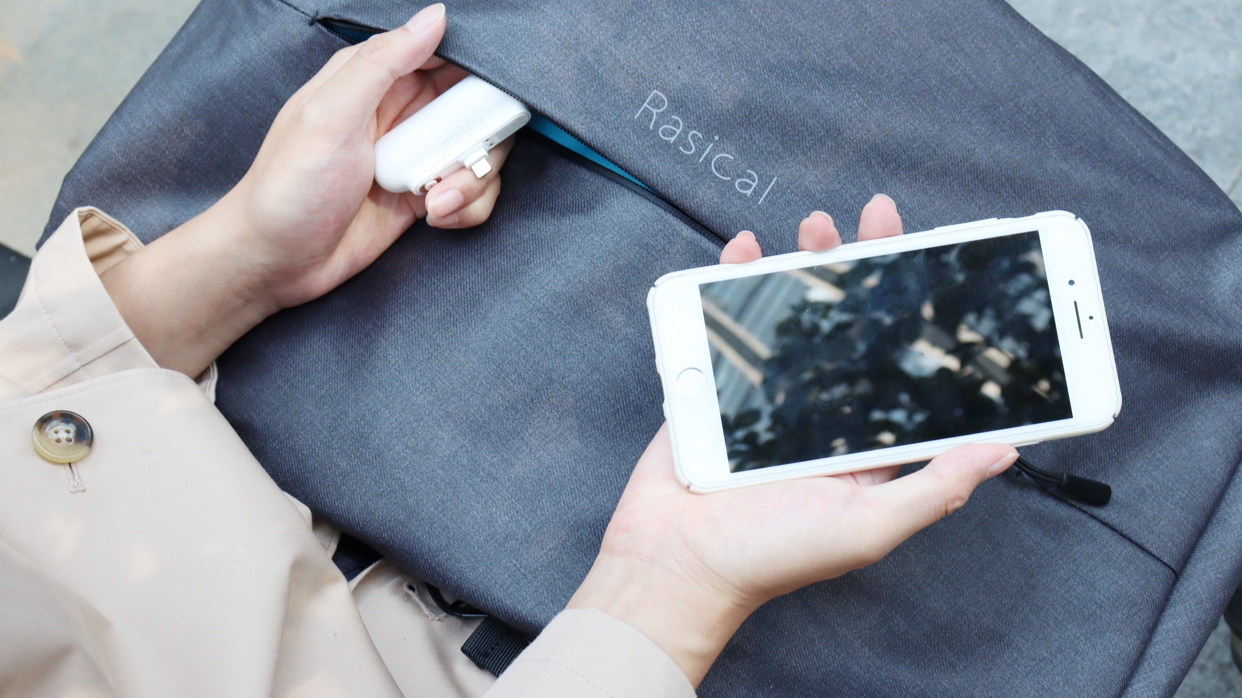 「マグッピ2」はかさばるケーブルを使わず直接充電可能なので、ポケットからサッと取り出して使うことができます。さらにケーブルがいらない分、軽量化にもなっています。