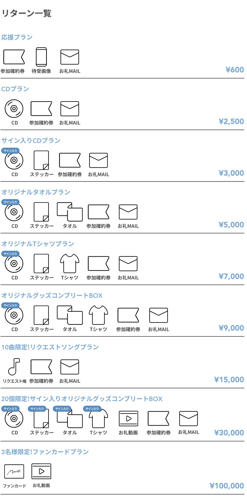 リターンのオリジナルグッズを身につけて、ライブに来てくれたら嬉しいな。