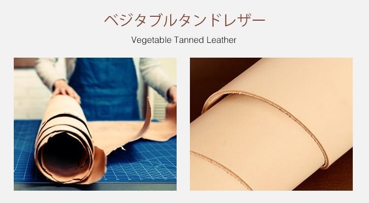 植物から抽出したタンニン成分を使ってなめされたレザーは、より環境にやさしく、革本来の自然な味わいを楽しめます。また、優れた耐久性と弾力性が魅力で、時間とともに、色と味わいが変化します。