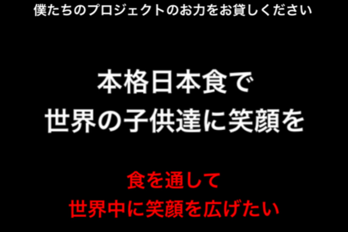 まず始めにプロジェクトをやろうと思ったきっかけは、昔からの顔馴染みでした2人は色んな国を旅するのがお互いの趣味で色んな国を訪れたりしたのですがその度に毎回日本との貧困の桁違いに驚かされています。物乞いをする子供達やゴミを拾い食事を探す子供達。その光景を目にする度に胸を痛めていました。僕たちに何かできることがないのか?と。色んな方々がボランティア活動などで炊き出しを行っているのも目の当たりにしました。最低限の材料で数重視の炊き出しでした。もちろん重要な条件です。しかし僕たちチームのRyosukeはここ日本でも板前として働いている以上、味で人々を幸せにしたいんです。それがRyosukeの望みです!普通に生活を送れている僕たち日本人が食べても美味しい!と思うような本格的な日本食を子供達に食べさせてあげ心の底から美味しい!心の底からの笑顔がみたいんです! そんな思いに僕Mr.Tも心打たれた1人です。今では2人の夢です。Mr.Tは動画撮影や動画編集が出来ますので炊き出しの風景を動画におさめて皆さんにもお伝えできると思います。是非僕たちチームにご協力ください!