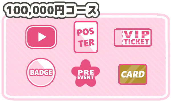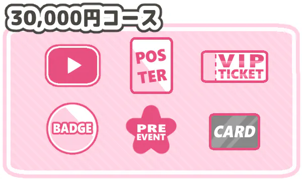 また、30,000円、100,000円コースのVIPチケットは先行申し込み期間内にお申込み頂ければ、優先的に座席を確保いたします。