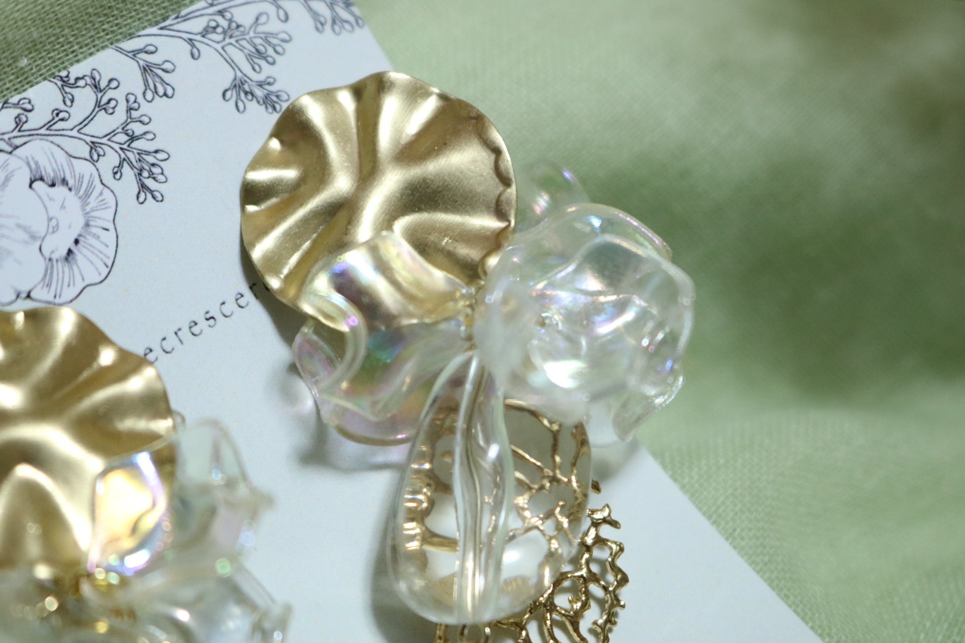 私自身鏡に映ったとき耳元で揺れるイヤリングが大好きでした。しかし、販売されているアクセサリーをみても1つに決めきれない、"とりあえず"で自分はアクセサリー購入していないか?といった疑問が生まれ、そもそも自分で作ろうと考え製作を始めたのが、pace crescereのきっかけです。