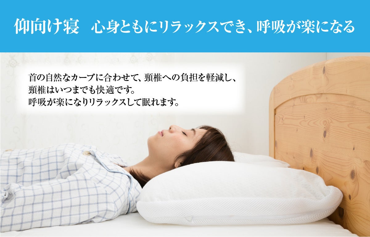 人間は寝返りは平均約30回されていると言われておりますが、寝返りをすることで、疲れを軽減するなど、寝返りのしやすい枕の形状と大きさとなっており、疲れや質の良い睡眠をサポート。