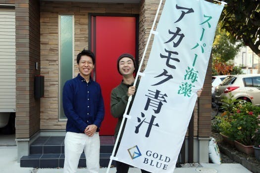 株式会社GOLDBLUEは2018年8月に設立。アカモクを使用した、健康食品・化粧品の製造販売を行っています。代表の川﨑と森の2名のみの小さな会社。駿河湾のアカモクをブランド化するため、地元企業と協力し地域の活性化に取り組んでいます。豊かな海駿河湾の特産品になるべく、アカモク商品の開発を進めています。GOLDBLUEが届けたいのは、健康・美容・そして笑顔です。