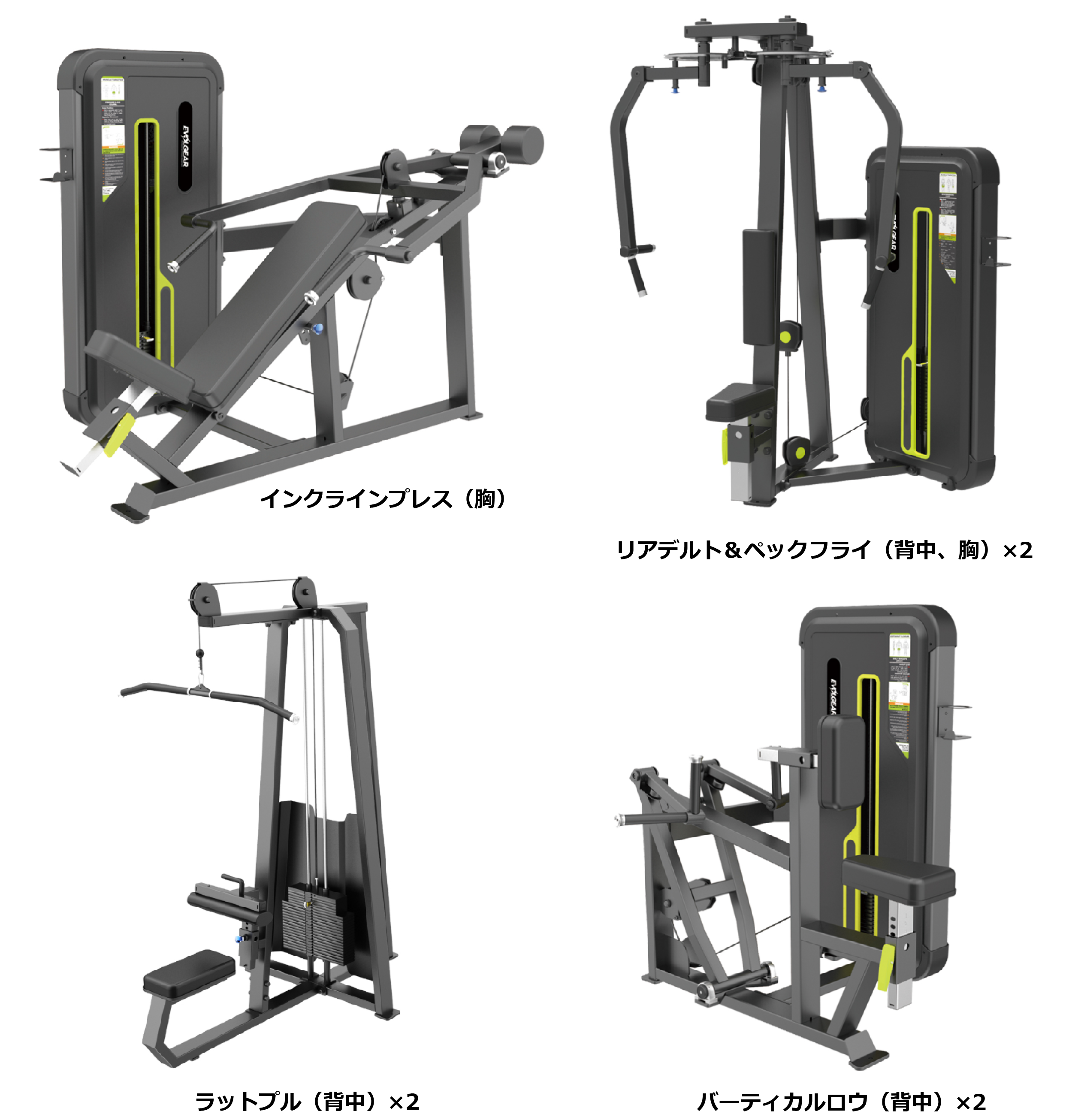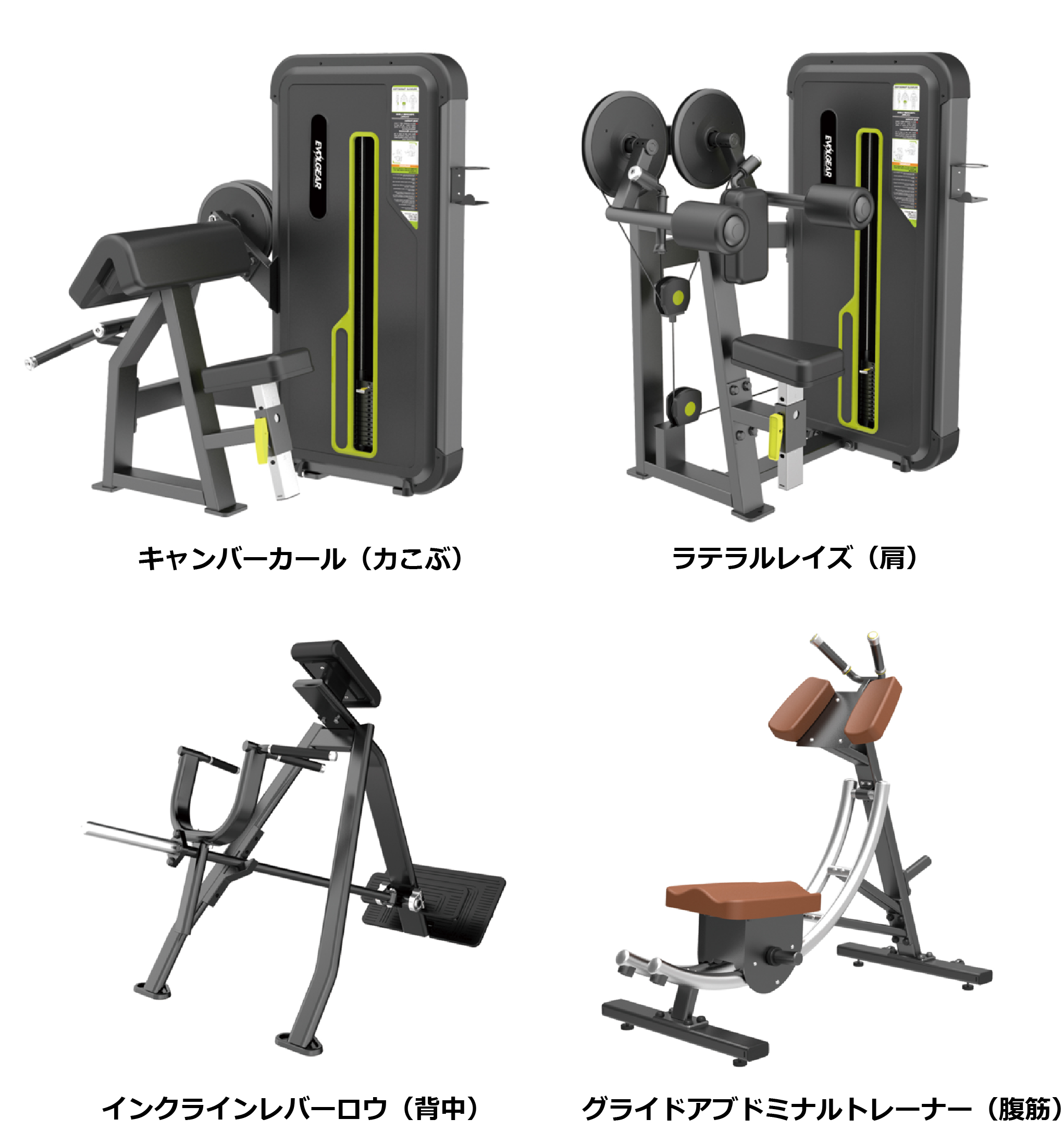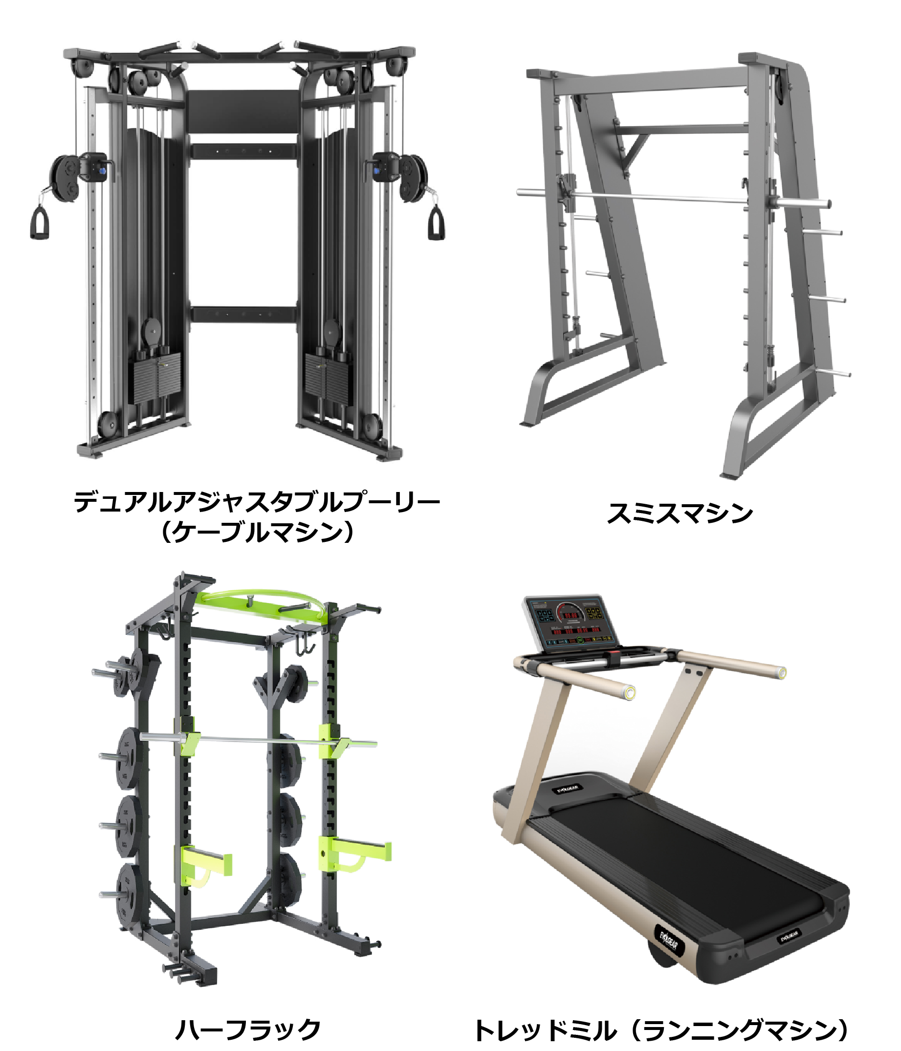上記マシンを予定しておりまして、男性女性どちらも満足のいく充実のラインナップとなっております。
