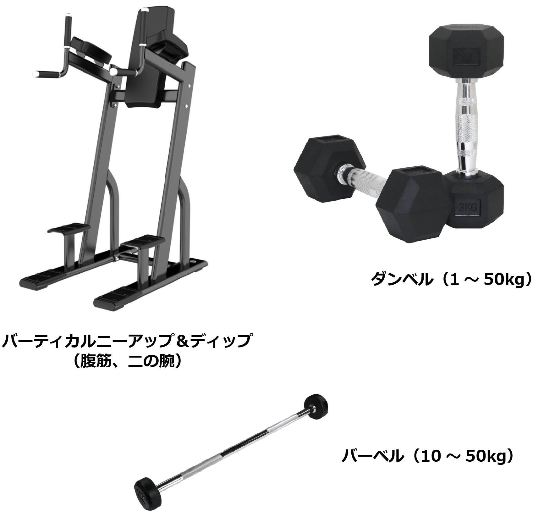 上記マシンを予定しておりまして、男性女性どちらも満足のいく充実のラインナップとなっております。
