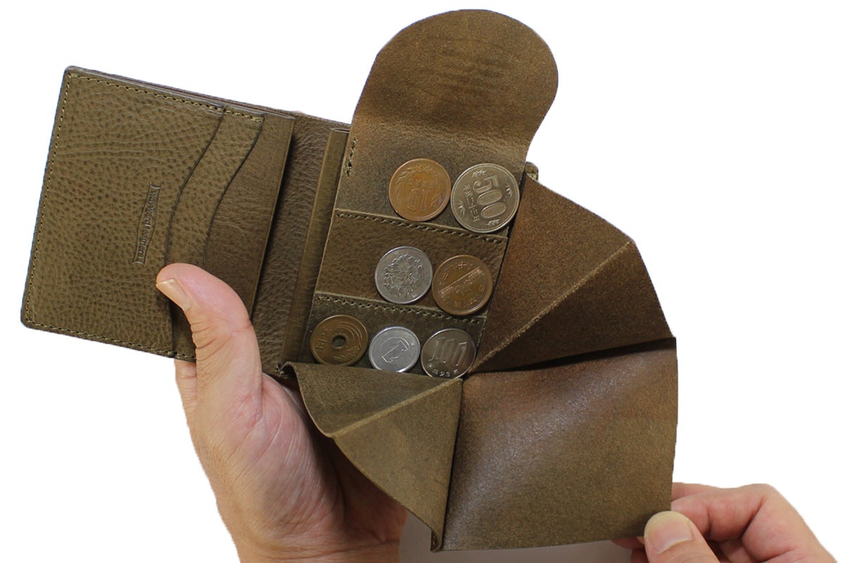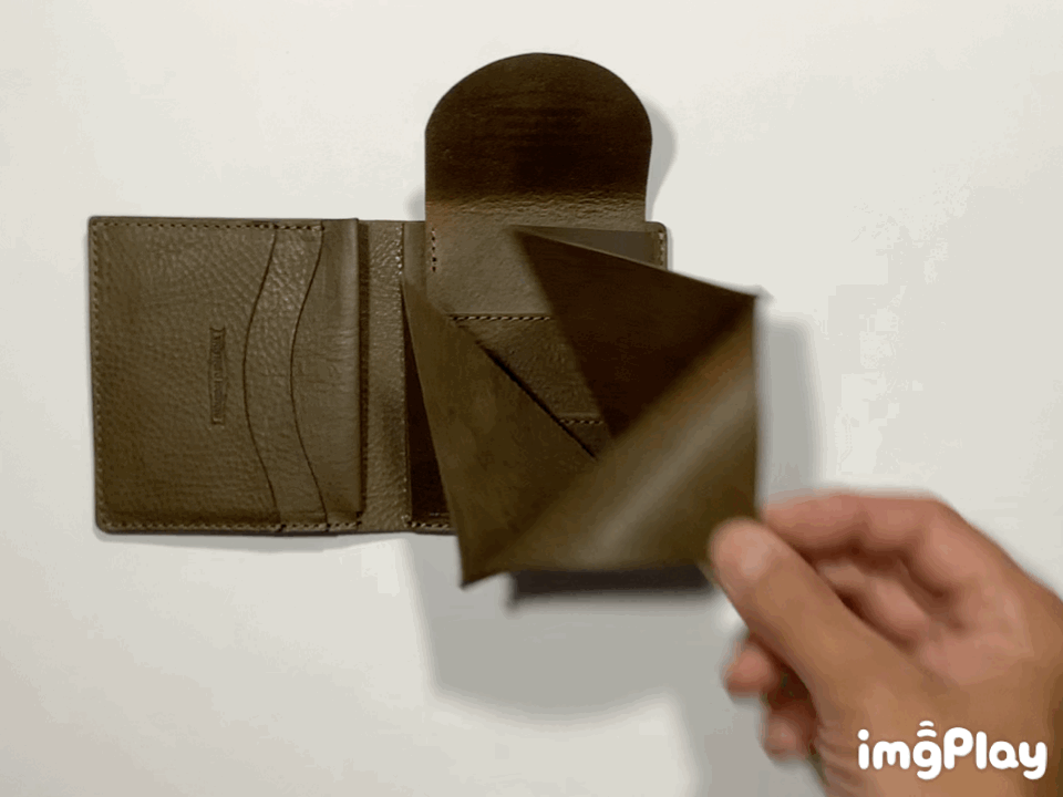 コインケースは、“仕掛け絵本”のように開いて使用します。
