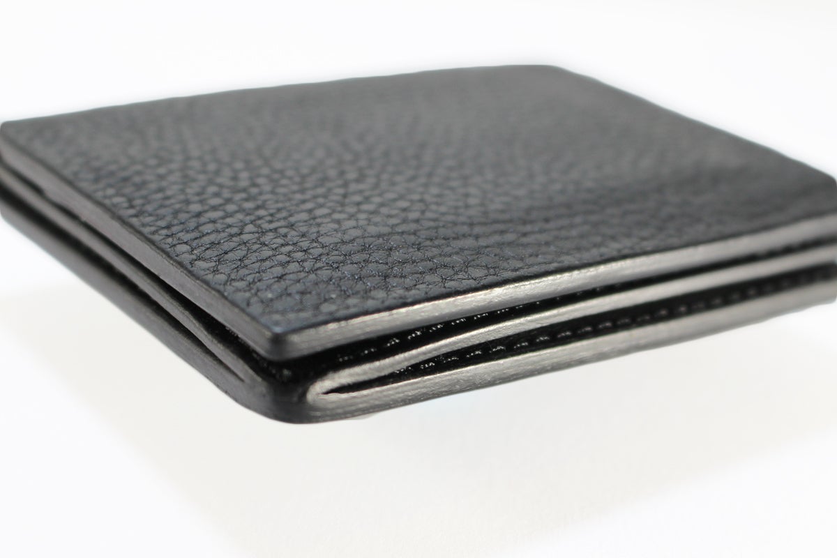 数枚のカード、少々の小銭、お札。キャッシュレス時代に必要最低限の持ち物が、これ一つにすべて収納可能。ウォレット自体のサイズは幅85×高97×厚10mmで、手のひらにすっぽりと収まります。