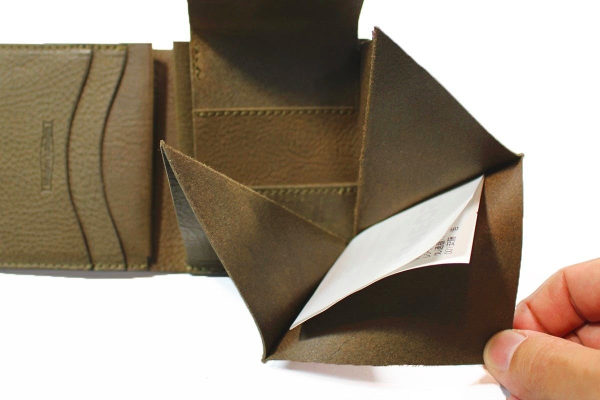 コインケースの手前部分は、レシートなどの小さな紙ものを収納できるスペース。一般的な大きさの名刺ならギリギリ収納できるサイズです。