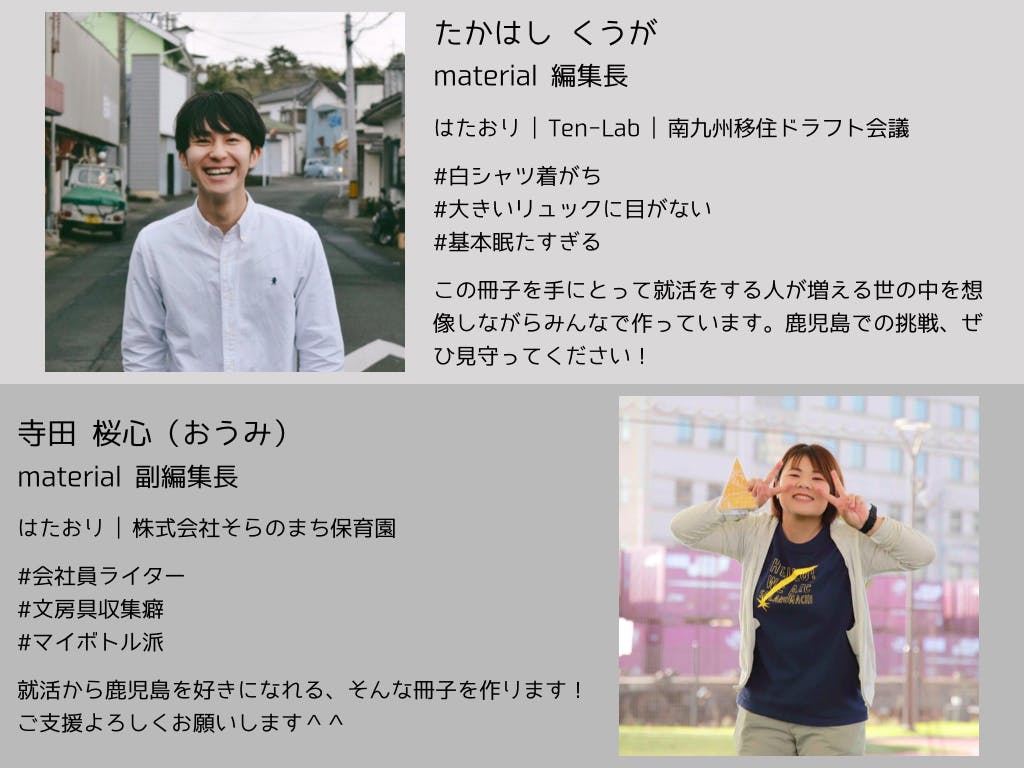 だったら、鹿児島の学生と企業が、それぞれ思っていることを聞いてみて、それを目に見える形にして多くの人に届けたい。そんな想いから、materialを発行することを決めました。