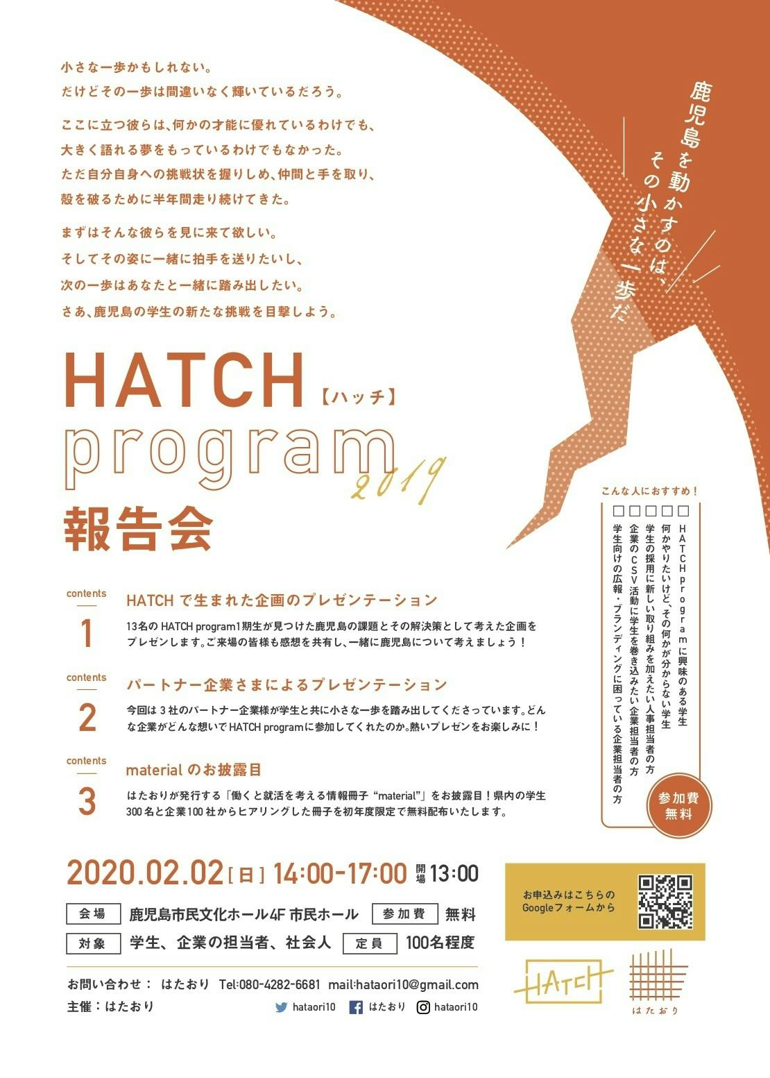 【2/2→HATCH program 2019 報告会/material お披露目会 同時開催】