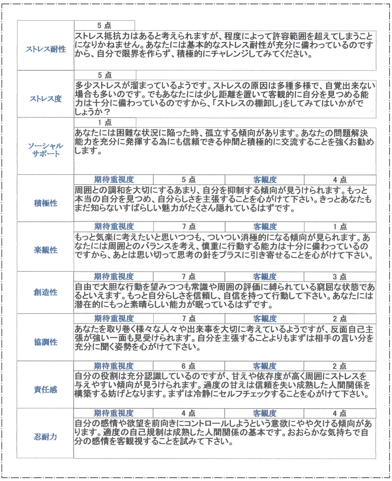 このテストでは理想像と客観度の乖離を重要視します。