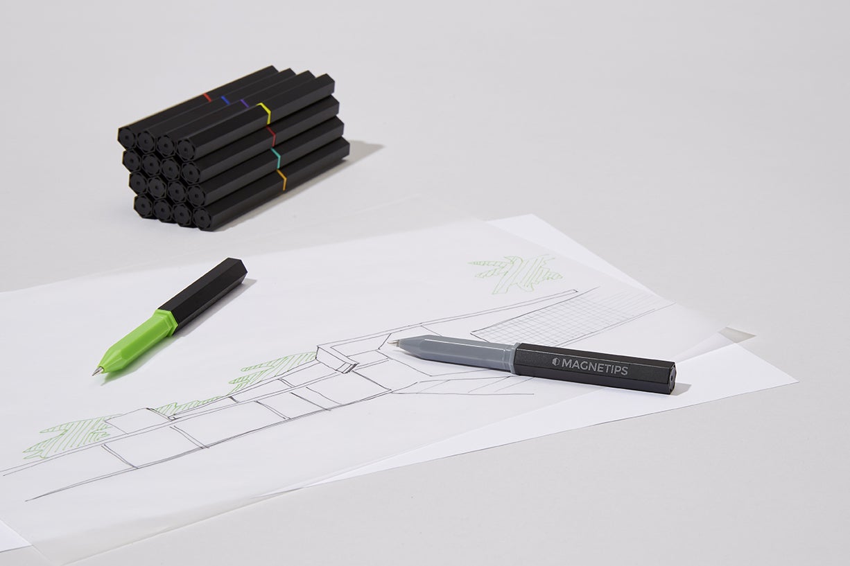 MAGNETIPSペンはお互いに磁力で引き合います。クリエイティブなやり方で絵を描くこともできるし、デスクを飾るオブジェにもなります。