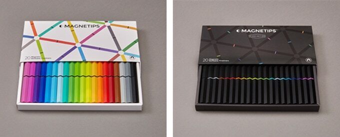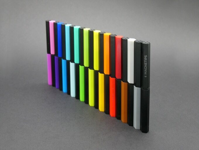 MAGNETIPSはビビッドなカラーペンが20色入っています。紙に美しく絵を描けるだけでなく、デスク上にまとめて置くだけでも、周囲が華やかで美しくなります。