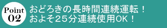 必要十分なパワーを残しつつ「連続運転時間」を延ばすことに最大限の工夫をいたしました。