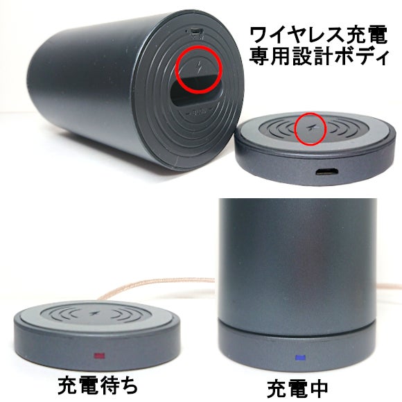 立てるだけで充電出来るよう、ワイヤレス充電を採用しました。