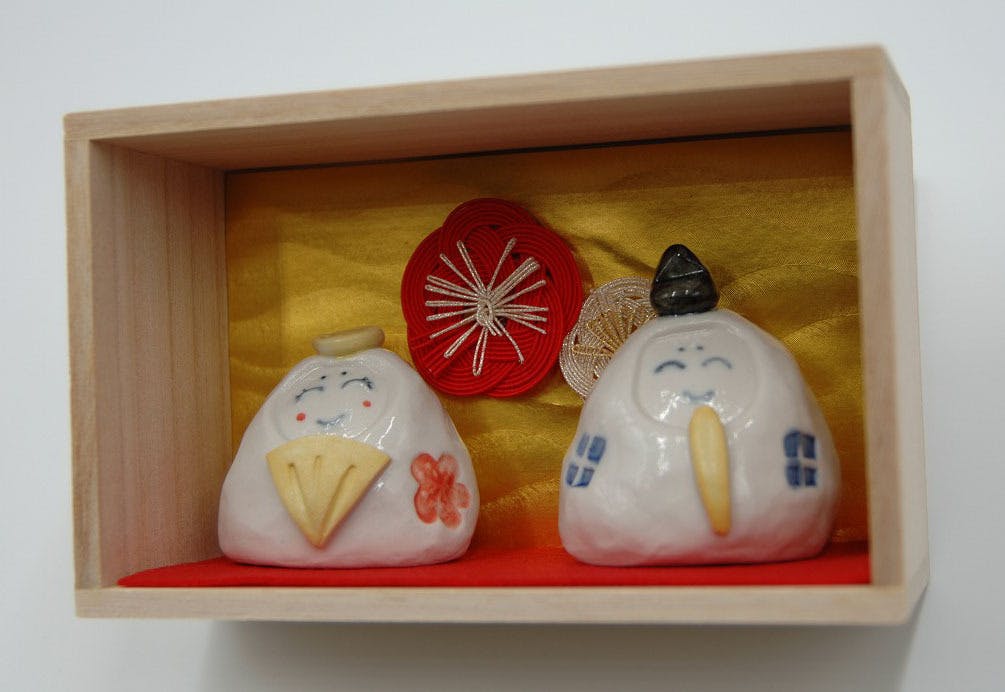 砥部焼えんどう窯コラボ商品 ミニ雛人形【笑顔】水引細工桐箱入り
