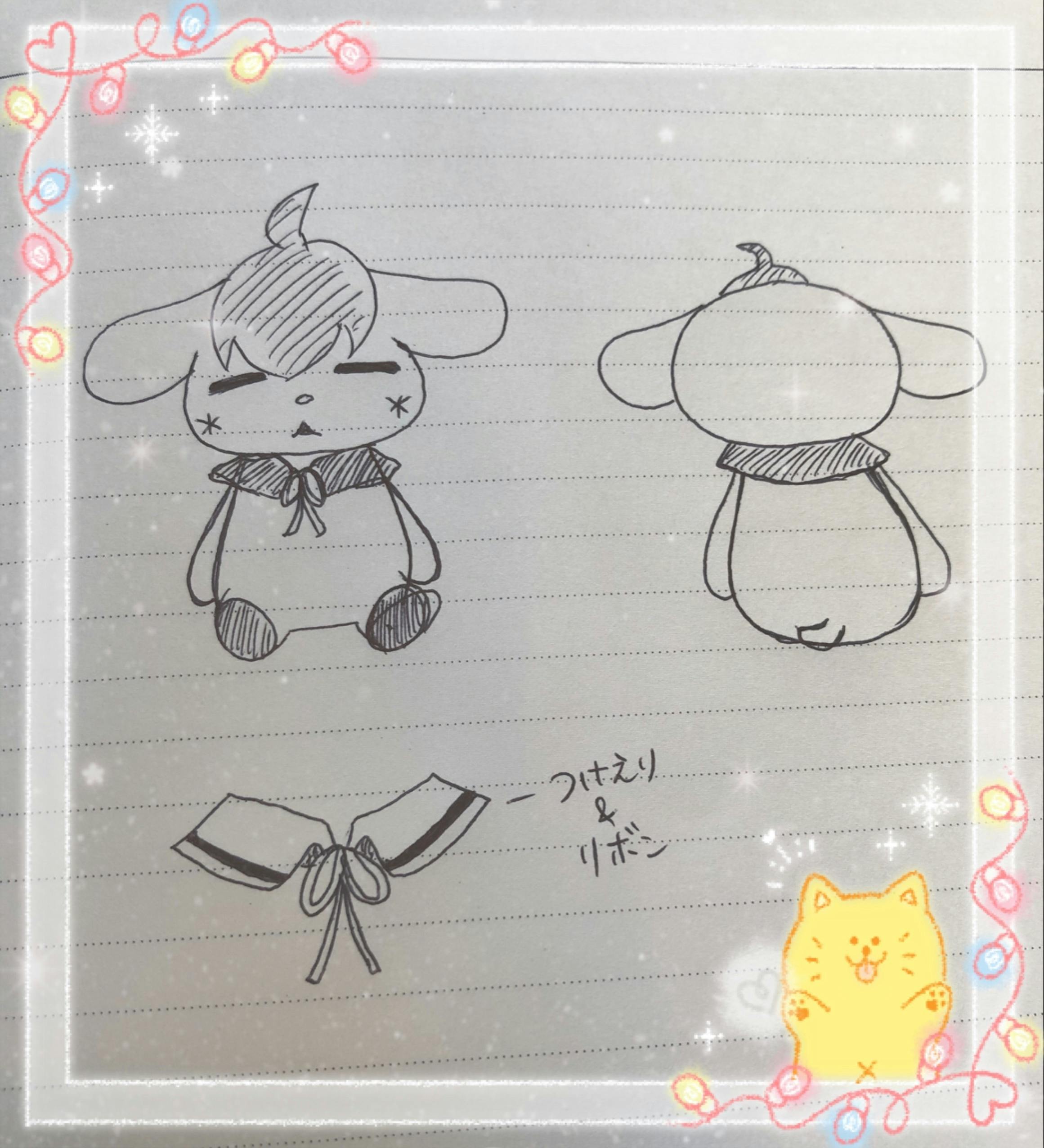そして、これはぬいぐるみ制作会社さんと予算との都合でまだ実現わからないですが…つけ襟的なものをつけて、ちょっとオシャレしてるたれこにしたいなって思ってます。