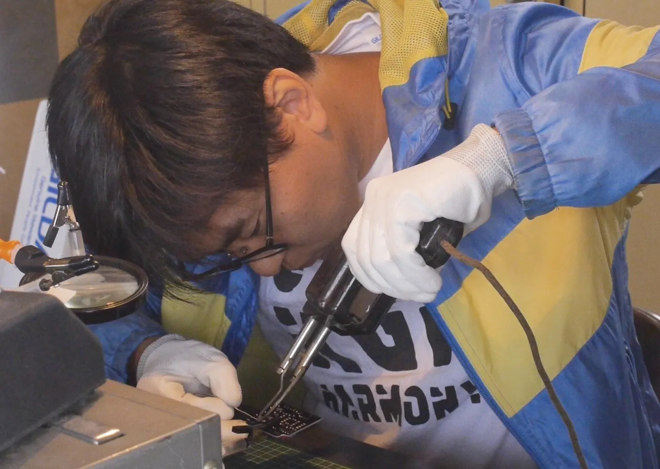 (私がハンダつけする様子)