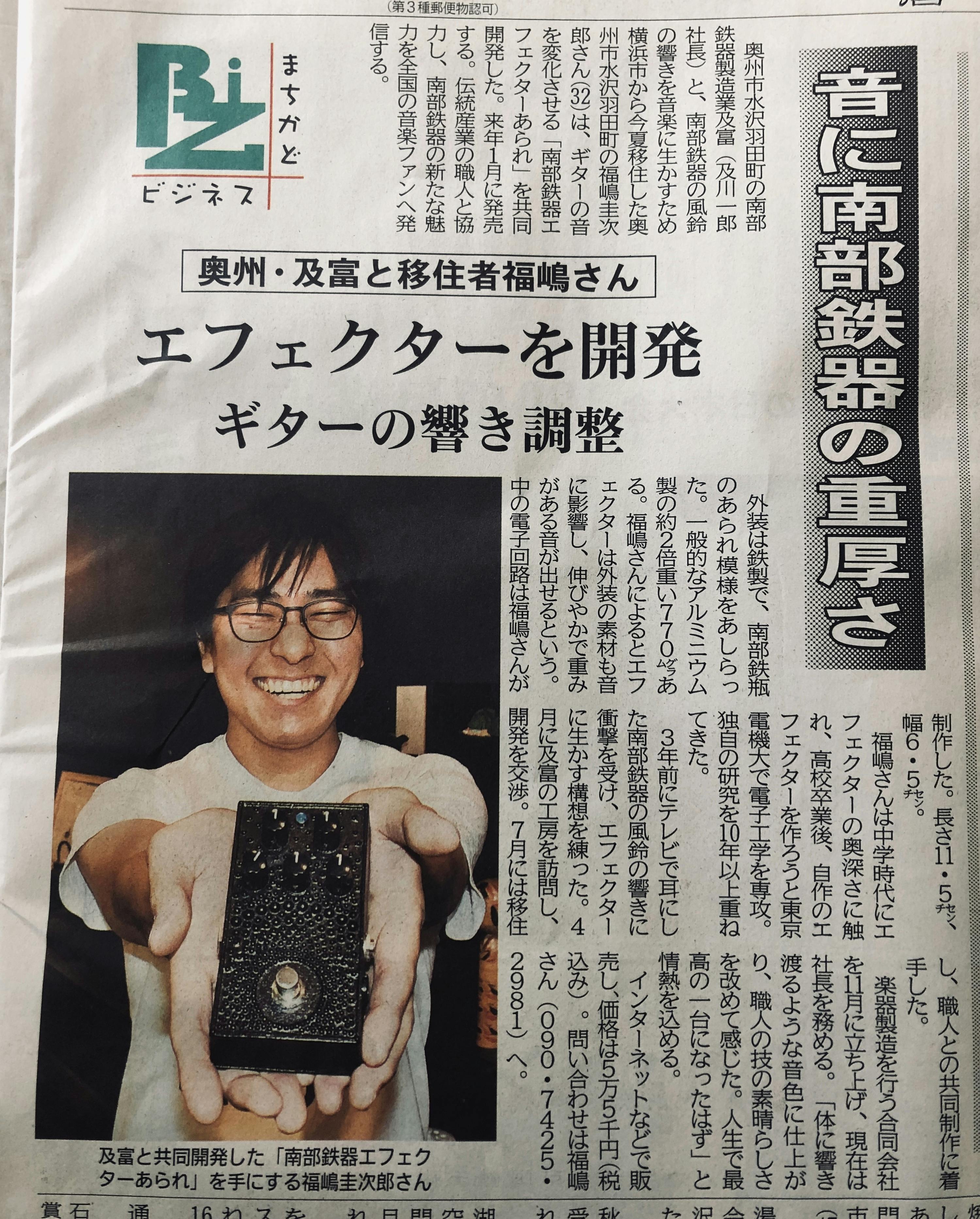 2019/12/09 09:35昨日は、嬉しいことに南部鉄器エフェクター披露会に来ていただいた岩手日報さんが、新聞記事にしてくださりました。ありがとうございます!!この顔。笑人生で初かな。。新聞に出れたの。とても大きな反響をいただきました。ここから全国、世界への広げていきたいです。 もっと見る