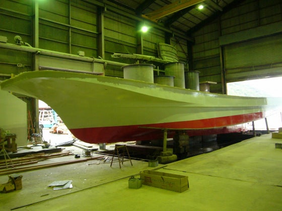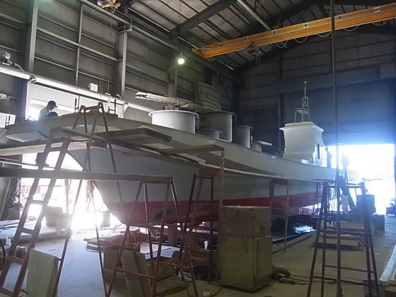 定置網漁業に使う漁船は現在山口県萩市萩造船所で建造中です。 大分、漁船らしくなってきました。 9月下旬に進水の予定です。 写真は7月5日萩造船所で撮影したものです。