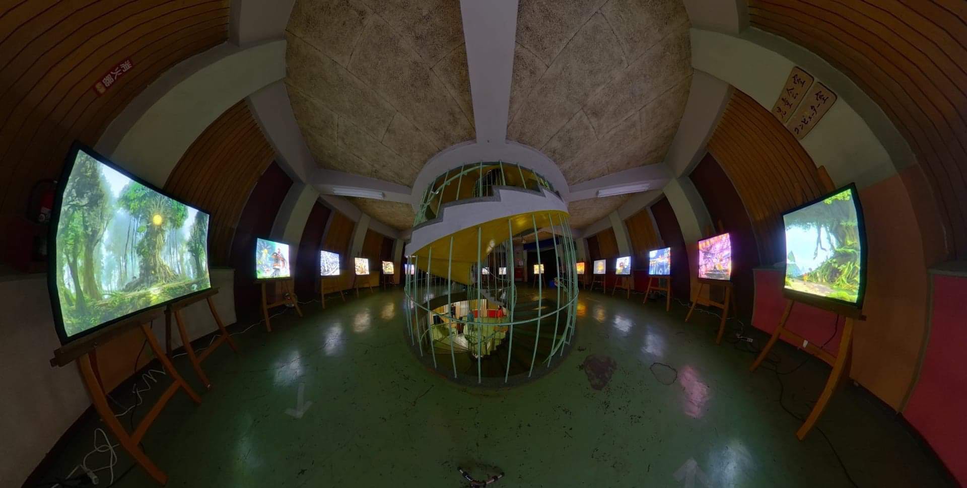 貴重な2棟建て円形校舎と光る絵本のコラボレーションを