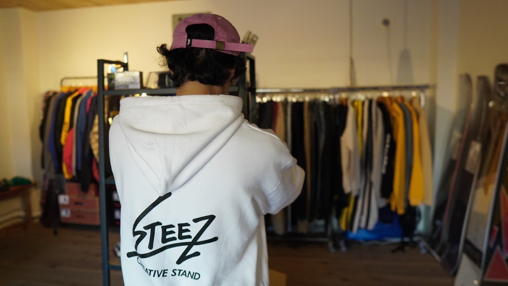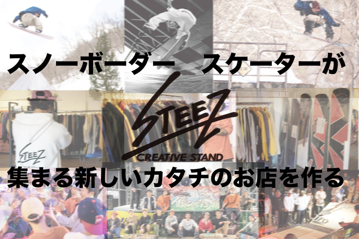 STEEZとは海外のスノーボーダーやスケートボーダーが俗に言うSTYLEというフレーズのスラング(造語)。スタイルというものに自分自身もプロとして意識してきたことであり、その魅力を伝えて行きたいと思っています。CRIATIVE STANDはこのお店からスノーボーダーとスケーターの人達がさらに楽しめるようにいろんな物や企画をクリエイトする場所にしたいと思い名付けました。