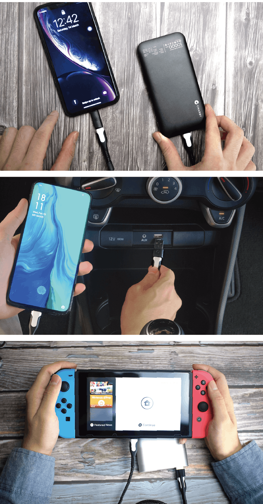 USB C、ライトニング、 Micro USB、全ての端子でデータ転送に対応しているので、スマホのデータをPCにパックアップする際も、これ1本で完結します。転送速度は、USB2.0に準拠しています。