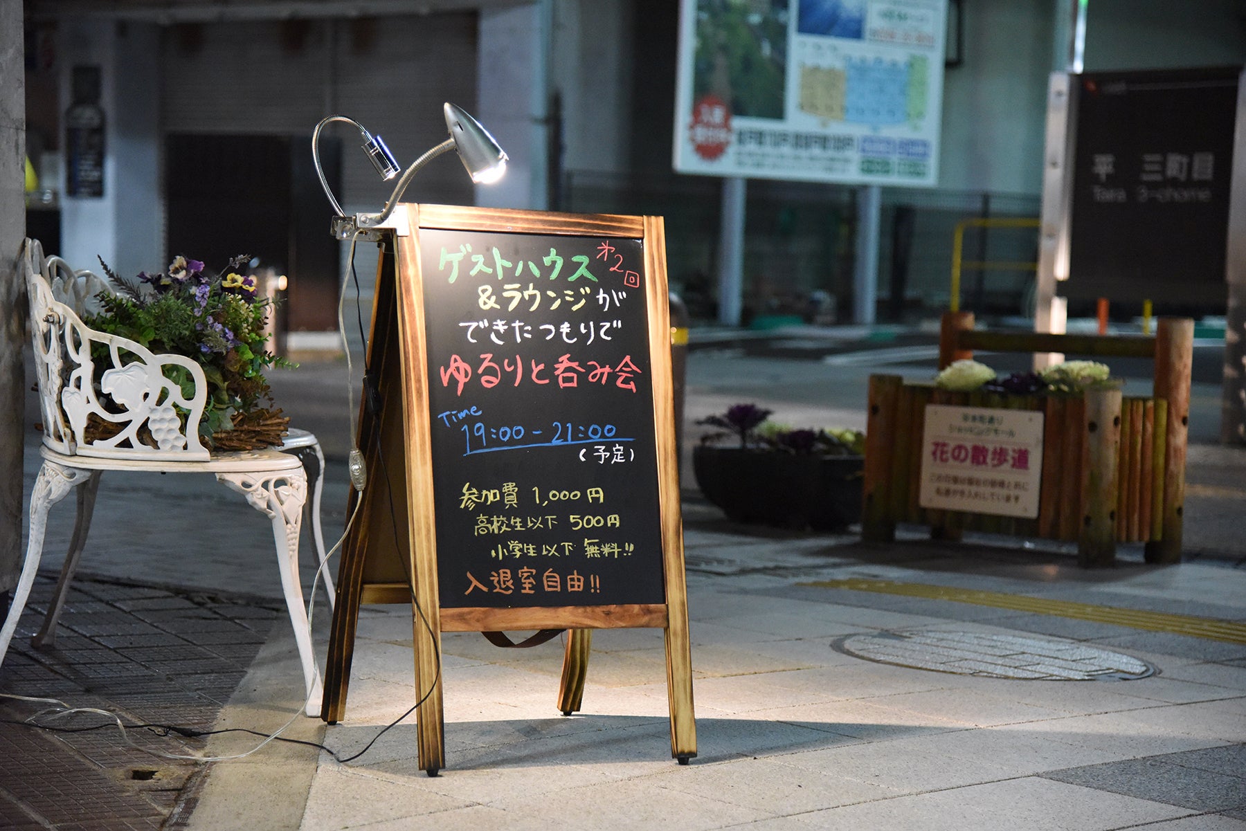 そして2019年9月30日の第3回。この日は、両親が運営する1,2階の「YAMATO」(花屋と洋服屋)の最後の営業日であり、ゲストハウスプロジェクトの具体的な「始動」の日でもありました。これまでみなさんと一緒にYAMATOを支えてくれた人たちにお礼を伝えるとともに、ゲストハウスの名前「Guest House & Lounge FARO」を発表しました。