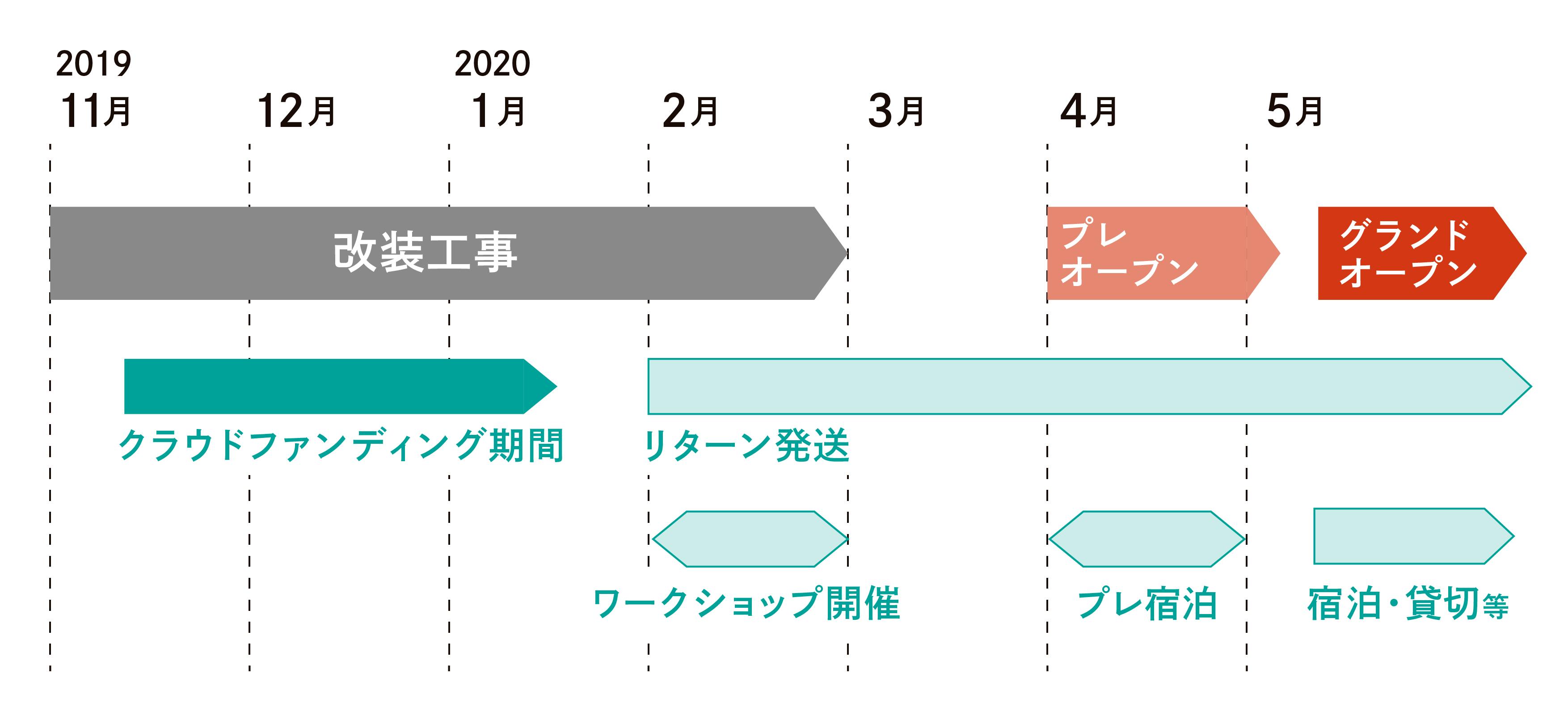 ゲストハウスは、2020年5月の開業を目指して動いているところです。2019年10月からは工事も始まりました。今回は、ゲストハウス改装費用の一部として充てさせていただきたく、クラウドファンディングに挑戦いたします。ただ支援する・支援されるという関係ではなく、一緒にゲストハウスをつくる「仲間」になってほしいという思いのもと、ゲストハウスをつくるワークショッププランもご用意しております! ご支援・ご協力のほど、どうぞよろしくお願いいたします!