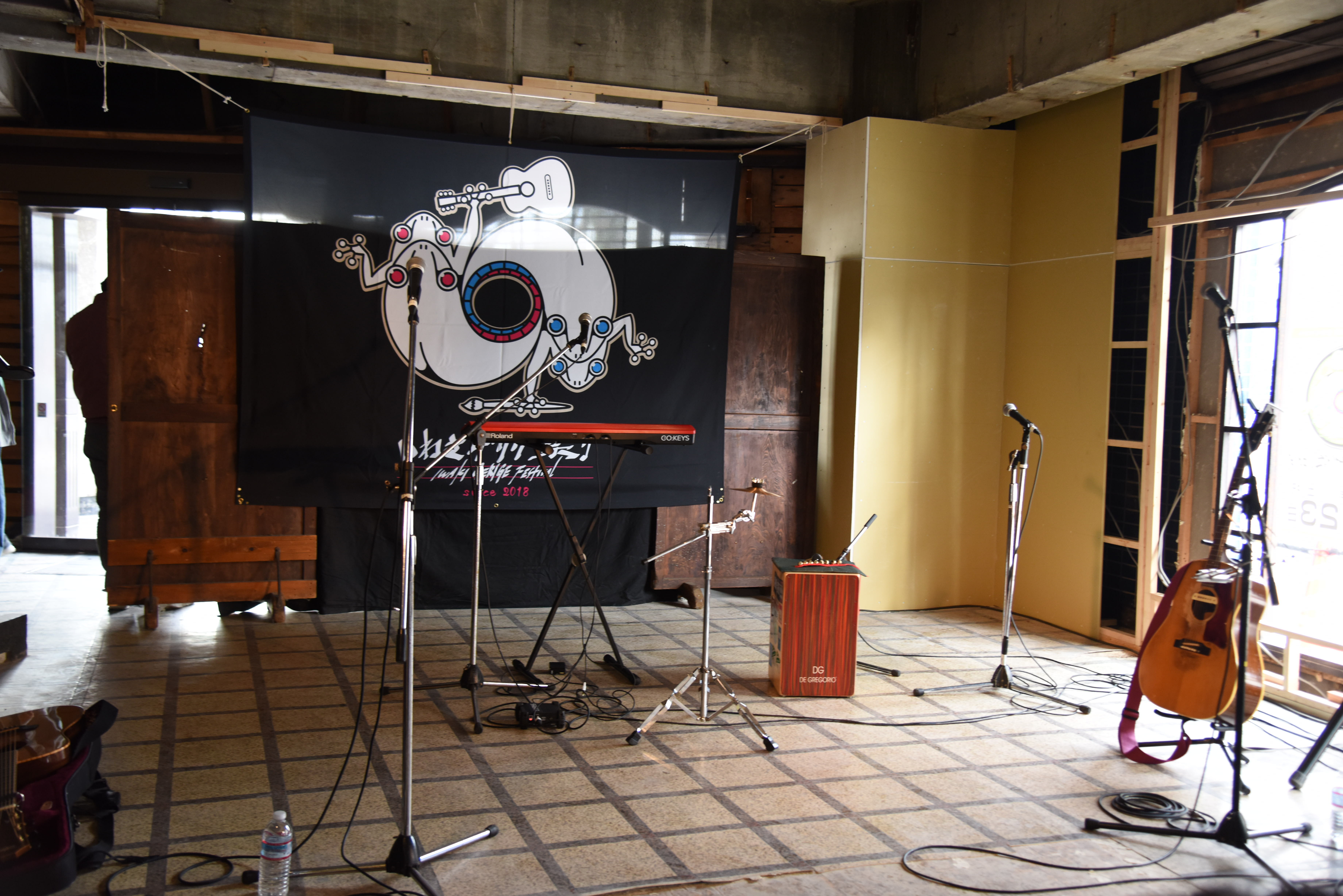今年しか見られない、改装中のFAROでのライブイベント。多くの人に来ていただき楽しんでもらえたと思います! コンクリート打ちっ放しだったり、配線が丸出しだったり、工事中だからこそ出る雰囲気もありますよね。