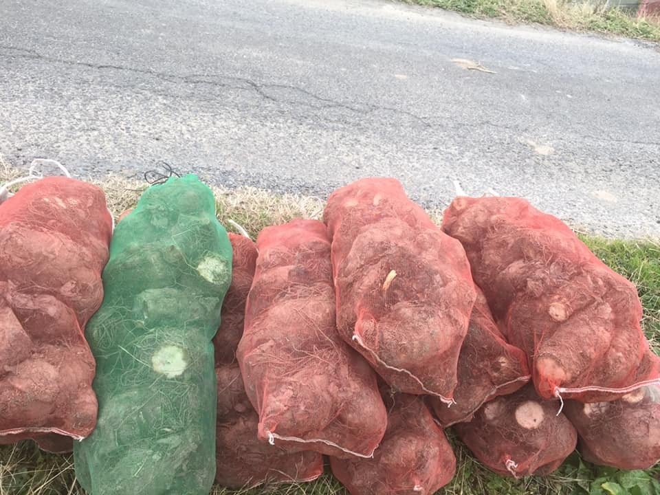 唯一水に強い里芋(長兵衛という名前を付けています。白石さんの畑だけで作られる伝統野菜です)は助かって、もう少しあるそうです。来年のための種芋の準備が進んでいました。