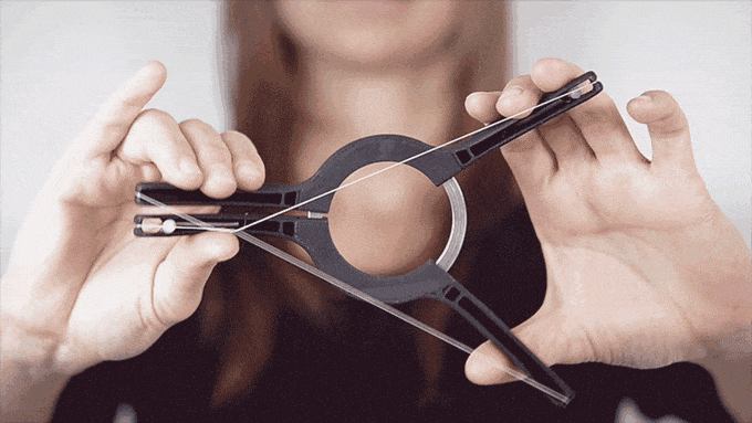 ゴムバンドの内側に親指と、他の人差し指と中指を通し使用し、ハサミのようにコリブリを使用してください!慣れると簡単に片手で使用可能です。