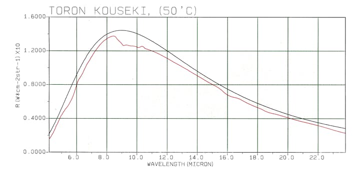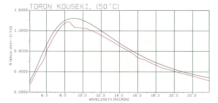 この石鹸の特徴は、理論放射体と云われる黒体(実際には存在しない理論体) に極めて近い波長放射体で、温泉効果で著名な「トロン」と比較しても、より黒体に近い波長を放射致します。