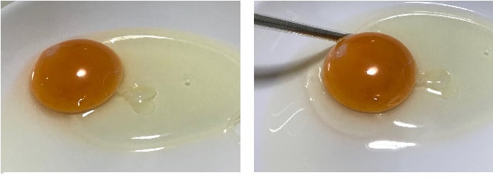 しかし、遠赤外線を白身にあてる事で、写真のように数秒で白身の盛り上がりが回復します。