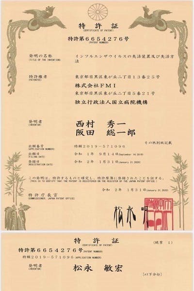 特許技術は湿度30%~35%という低湿度状態でインフルエンザウイルスを失活させる