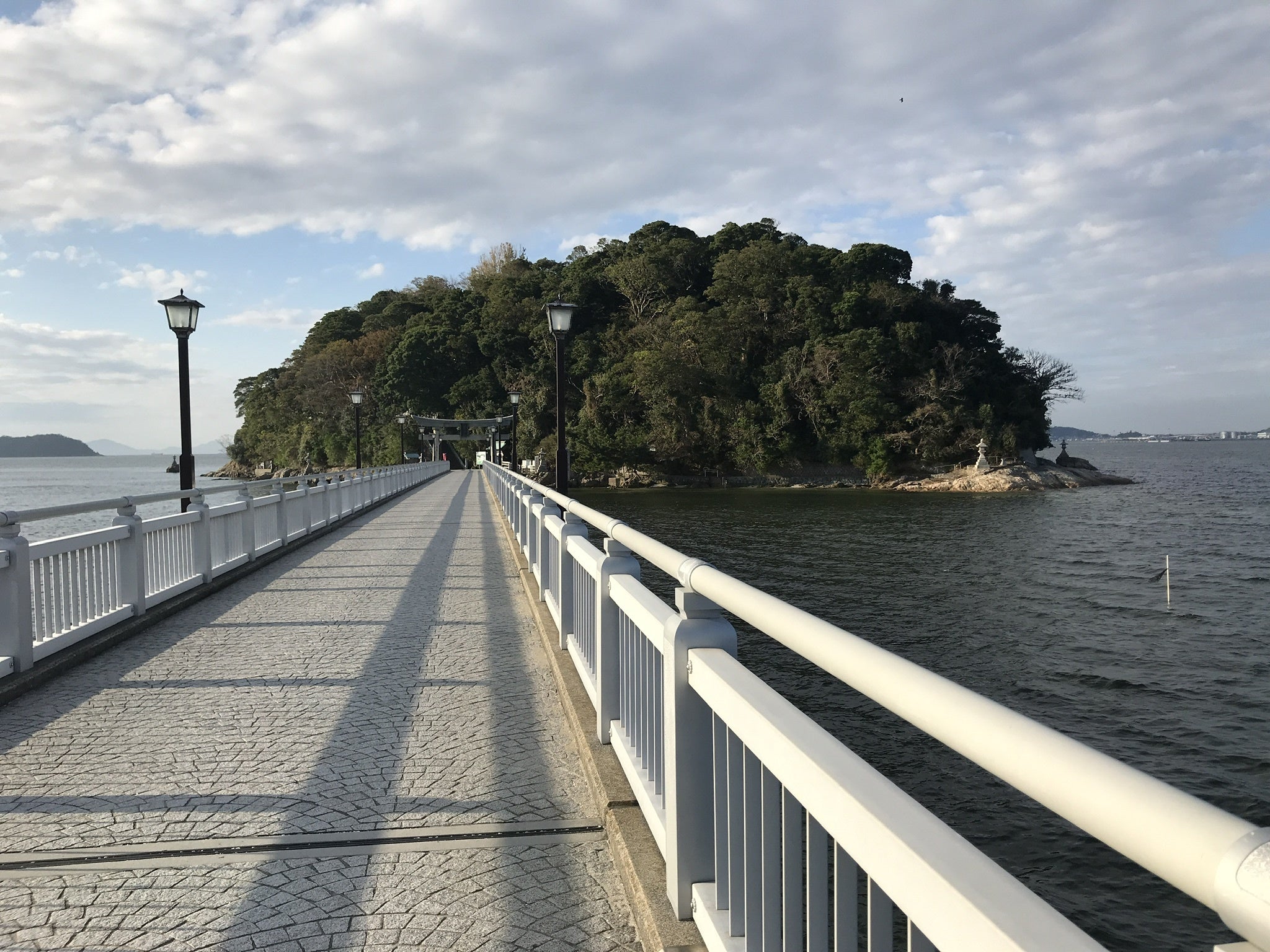 水族館は海沿いにあり、神社のある竹島へは橋を歩いて渡ります。
