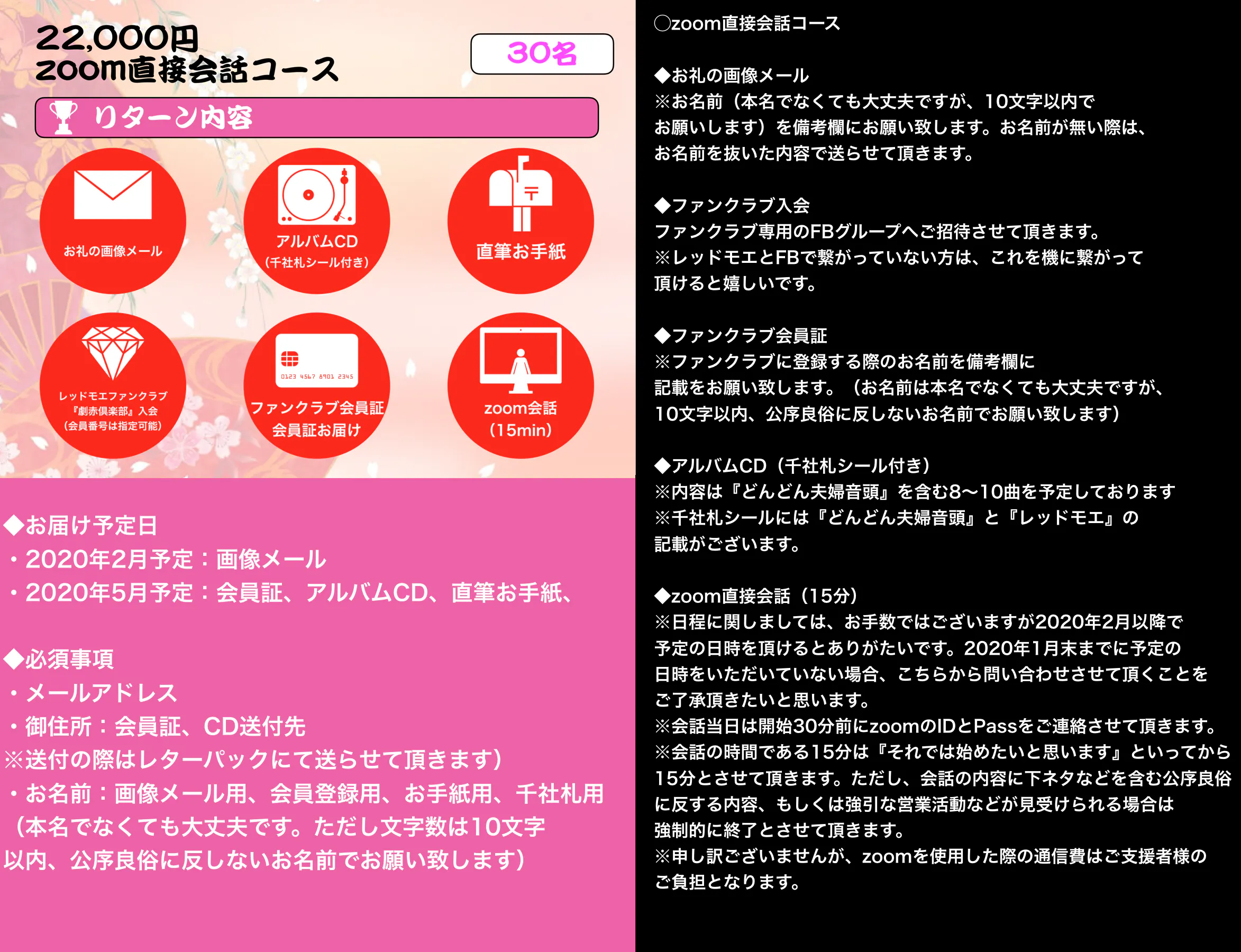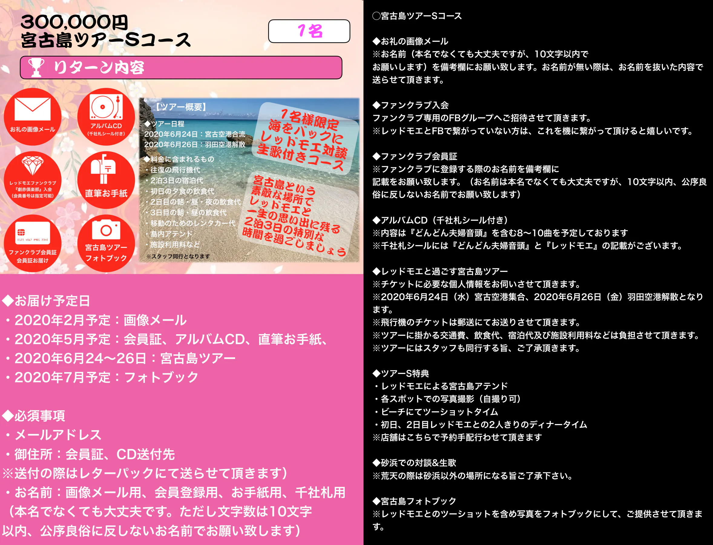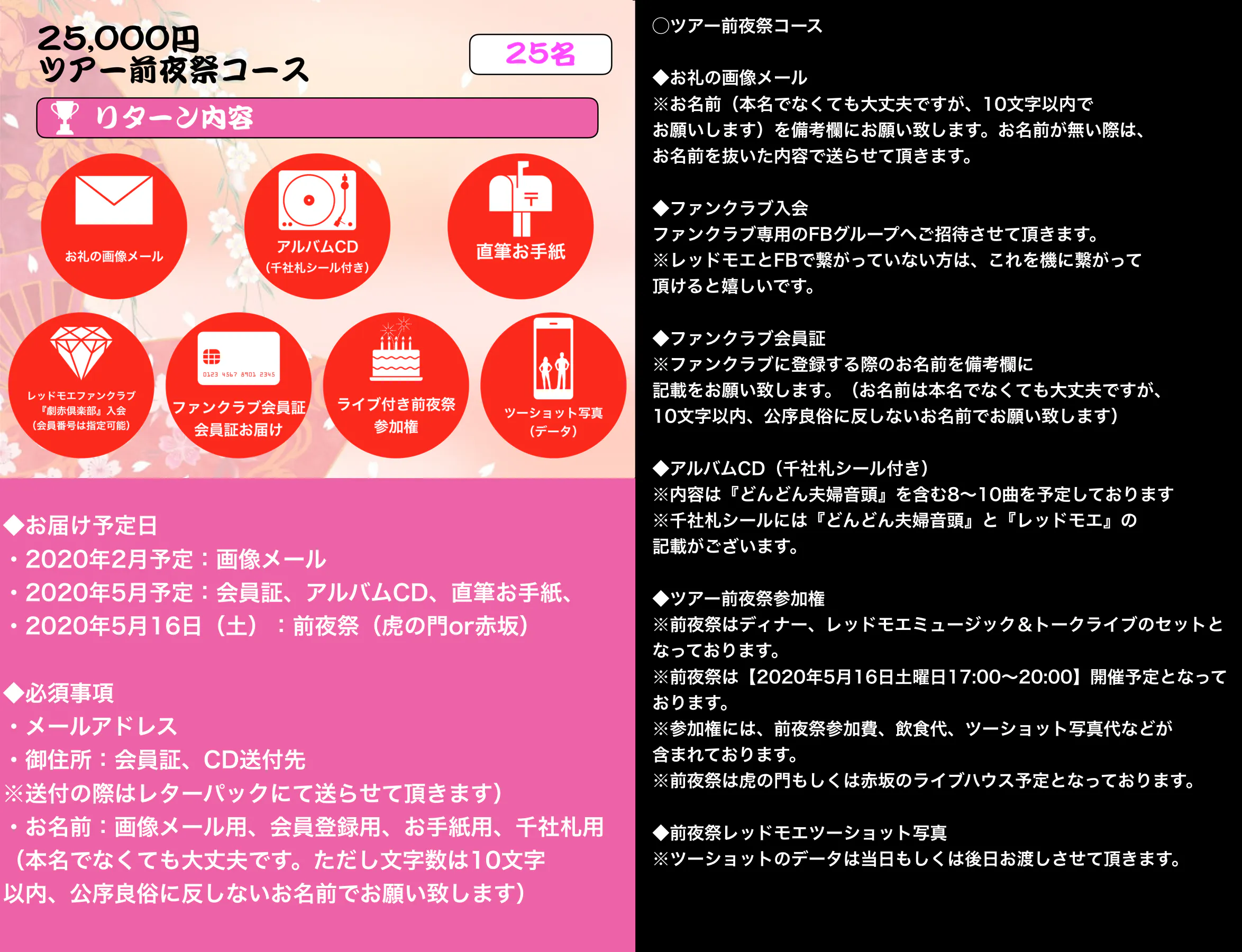 今回のツアープロジェクトのメイン会場は市役所、スーパー銭湯、アウトレット、道の駅などとなっており、レッドモエの声や曲を知らない多くの方々へ届けるツアーとなっております。その為お客様がゼロの可能性があり、大変不安では御座いますが皆様のご支援を自信にツアーを成功させたいと思っております!