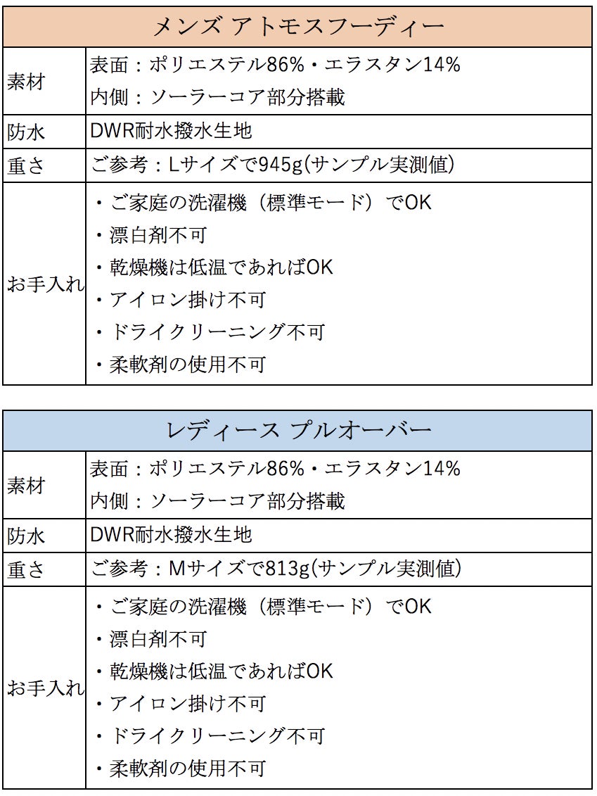 メンズ アトモスフーディー(2色) & レディース プルオーバー(2色)